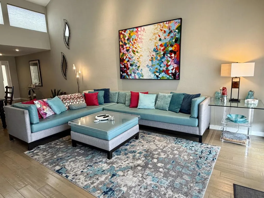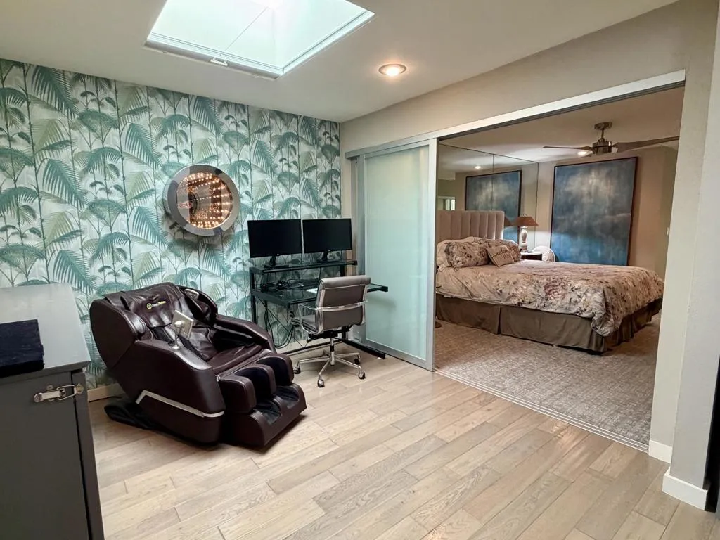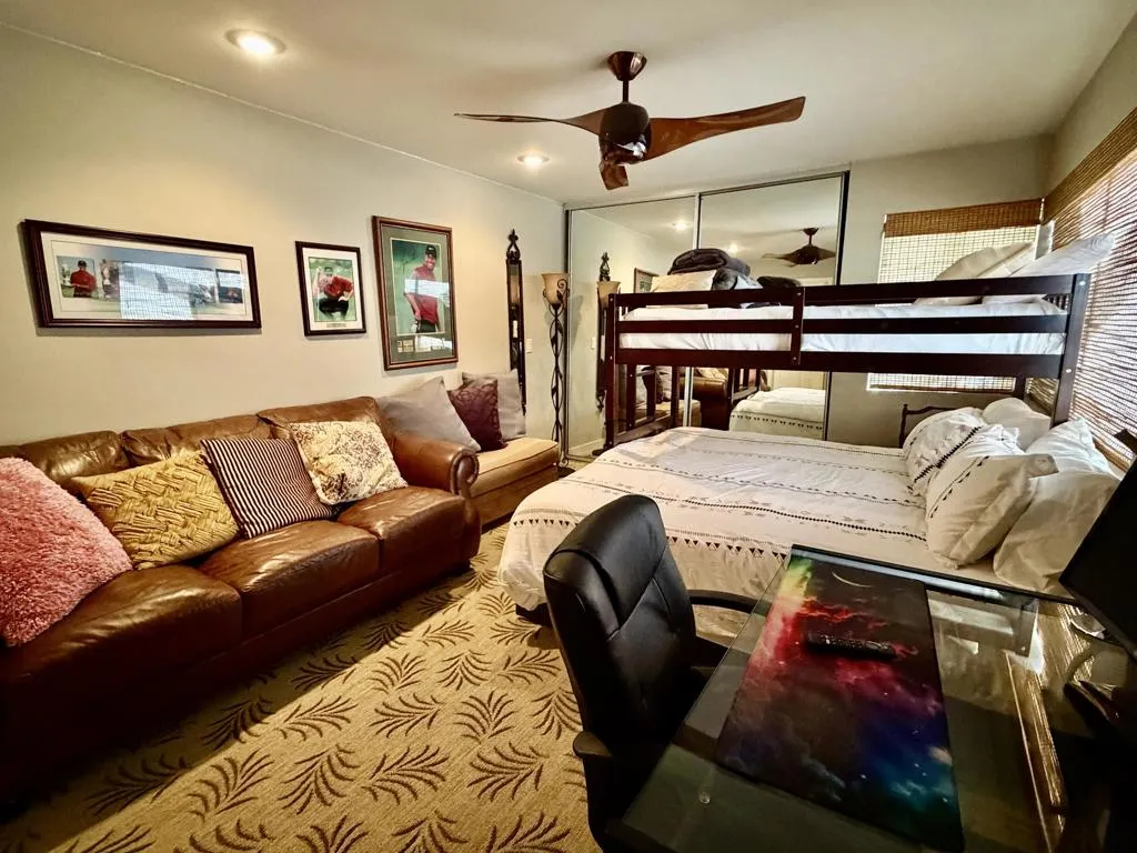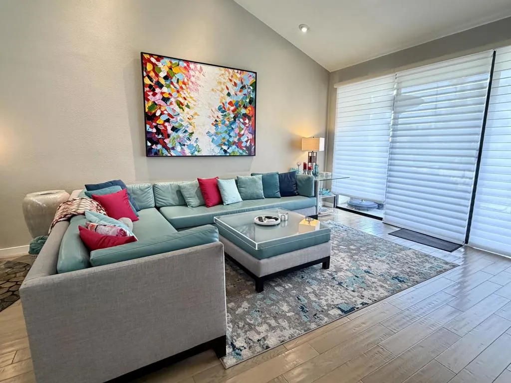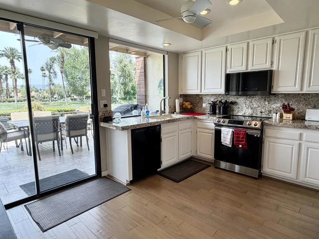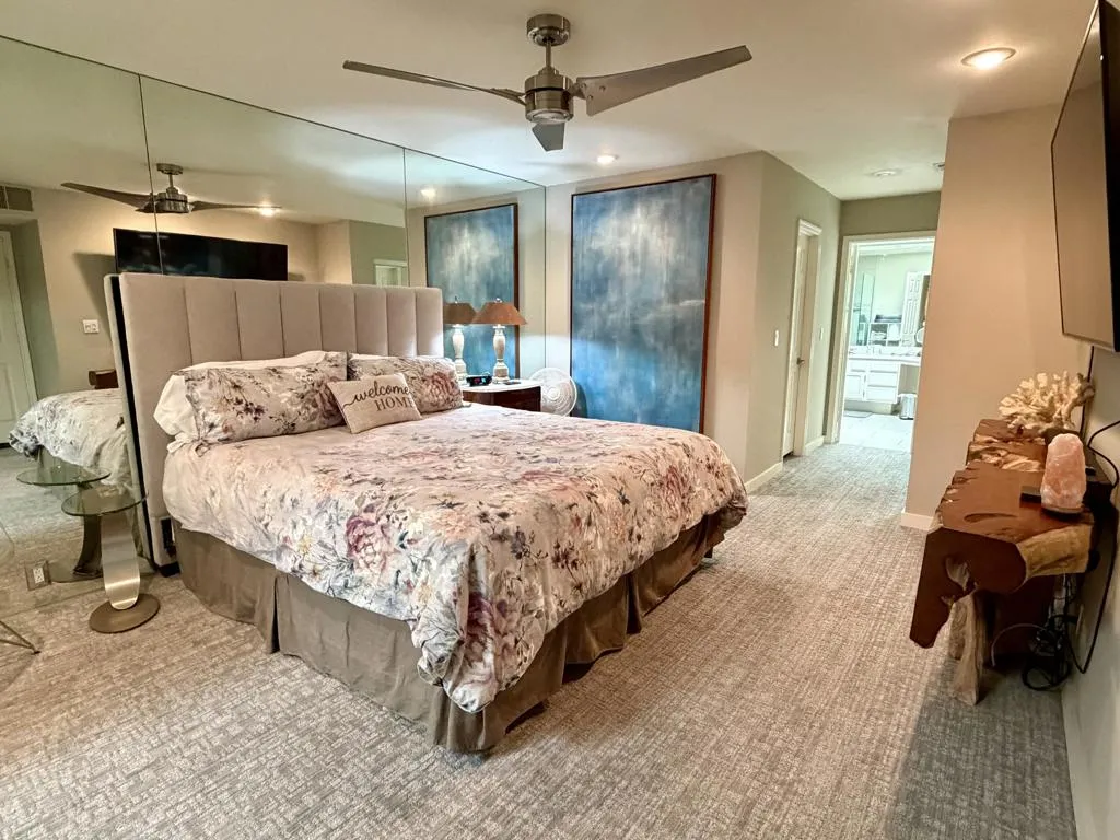 Enjoy fabulous fairway, water, and mountain views from the extended patio of this beautifully remodeled 200 Max Plan boasting 2 bedrooms and 2 baths. With spacious living areas and a vaulted ceiling in the living room, this condo exudes an open and inviting atmosphere. A cozy gas fireplace adds warmth, while custom window coverings and stunning mid-century furnishings create a sophisticated yet comfortable aesthetic. The converted atrium provides additional living space, perfect for relaxation or entertaining. Located just steps away from the community pool and spa, this is the ideal vacation retreat. Call now to reserve your beautiful getaway!