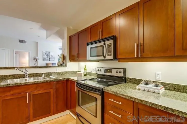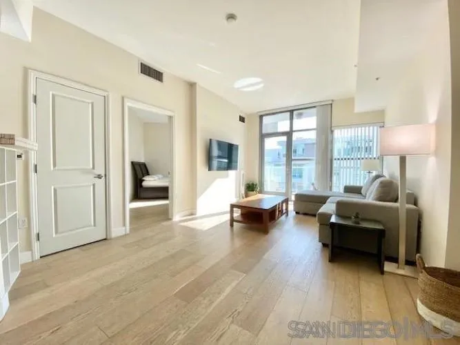 Welcome to this stylish 1-bedroom, 1-bathroom condo in the sought-after Park Terrace community, located in the heart of East Village. This UNFURNISHED 800 sqft home features high ceilings, luxury vinyl flooring, a modern kitchen with stainless steel appliances, in-unit washer/dryer, A/C, and a private balcony offering breathtaking water and Coronado Bridge views. Enjoy the convenience of 1 reserved parking space and community amenities such as a BBQ deck, fitness center, and recreational room. Perfectly situated within walking distance to Petco Park, Balboa Park, Seaport Village, Gaslamp Quarter, and Little Italy's Farmer's Market, this home places the best of downtown San Diego at your doorstep. With easy access to the train, trolley, airport, and beaches, this is urban living at its finest. Schedule your tour today and make this exceptional residence your new home! The owner pays for water, sewer, and trash, so the tenant is only responsible for SDGE, cable, and internet. Includes 1 gated parking space, pet-friendly with a $500 pet deposit and $25 pet rent. $500 OFF ON FIRST MONTH'S RENT IF LEASE SIGNED BY 5/1. Welcome home to this impressive residence, in the highly sought-after community of Park Terrace, located in the prime East Village District. Enjoy peak water and Coronado bridge VIEWS. You will appreciate the light, bright & airy vibe throughout this spacious 1-story, high ceilings, 1 bed/1 bath, 800 sqft home with 1 parking, and a PRIVATE balcony. A full-size kitchen with stainless appliances provides the perfect space to whip up culinary delights and entertain guests. This home also features luxury vinyl flooring, a stackable washer/dryer in-unit, and A/C. Community amenities include a BBQ deck, spacious recreational room, and fitness center. Best location downtown, walking distance to everything: Petco & Balboa Parks, Seaport Village, Gaslamp Quarter, the wildly popular Little Italy Farmer's Market, Waterfront Park, fantastic dining, cafes, bars, boutiques, and entertainment. Close proximity to the train, trolley, airport, beaches & more. Don't miss the opportunity to call this residence home - schedule your tour today and experience the true magic of East Village living