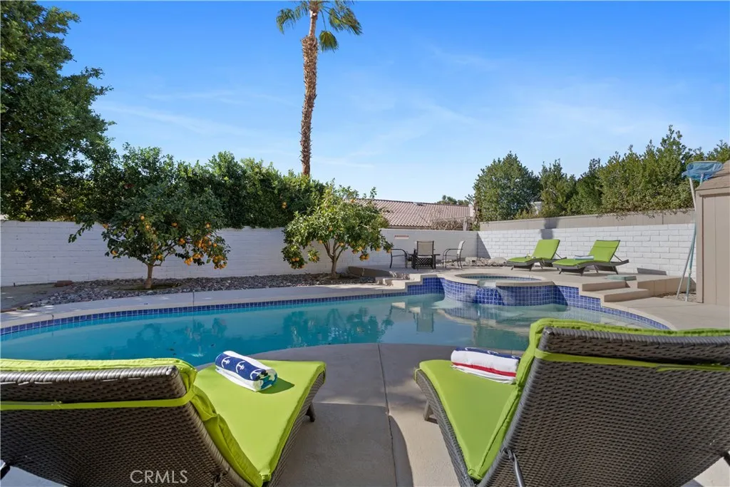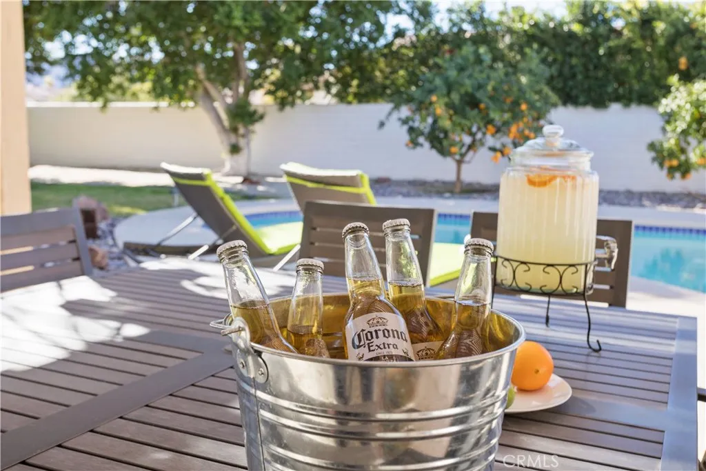 (Pricing reflects the lowest rates of the year; rates may be higher during peak season and other months.) Welcome to Casa De Joya – a luxurious single-story retreat in the highly desirable Rancho Ocotillo Community of La Quinta. This beautifully designed 4-bedroom, 2.5-bath home offers 2,436 sq ft of elegant living space with soaring vaulted ceilings and modern upgrades throughout. Step into a spacious living room and continue to the open-concept family room with a cozy fireplace. The gourmet kitchen features upgraded countertops, white cabinetry, and stainless steel appliances—perfect for entertaining. The expansive master suite is set apart for privacy and includes a walk-in closet and private bath. Three additional guest rooms, including one with bunk beds and a trundle (sleeps 4), offer comfortable accommodations for family or friends. Enjoy new paint, vinyl wood flooring, and tasteful furnishings that blend comfort with style. The backyard is a true desert oasis—complete with a heated pool (fees apply), raised spa, wood-burning fire pit, and a covered patio with lounge seating. Special Amenities: ? Private heated pool/spa (heating fees apply) ? HD flat-screen TVs with cable ? Fast, extended WIFI mesh network ? Fully equipped gourmet kitchen ? Spacious master suite and upgraded bathrooms ? Central A/C for year-round comfort ? Covered patio with fire pit and lounge chairs Located near top-rated schools, restaurants, shopping, golf, and freeway access, Casa De Joya is ideal for families, couples, or groups seeking a relaxing getaway. A Ring doorbell camera provides added security (no interior cameras). Guests enjoy full access to the home and backyard, ensuring a memorable and private experience.