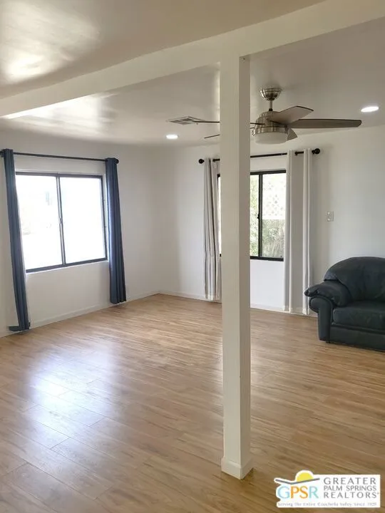 Settled within the very lively golf community of Desert Crest Country Club in a beautiful rural setting, this one of a kind Two Bedroom / Two Bath, COMPLETELY REMODELED manufactured home that was built in 1973 offers a unique blend of comfort and convenience tailored for those seeking an active and vibrant 55+ lifestyle. The rare COVERED RV PARKING especially contributes to your Active style of living! Located in the heart of Desert Crest Country Club yet just around the corner from the huge Clubhouse, mineral spring water pool & spas, and golf facilities that are free to the Owners, this home enjoys the perks of a lively lifestyle, surrounded by the scenic beauty of the desert landscape in the Western Coachella Valley. The Desert Crest Country Club community boasts a 9-hole golf course, inviting residents to enjoy leisurely rounds amid the picturesque setting of pond and mature trees that boast views of Mounts San Jacinto and San Gorgonio and the iconic windmills of the Banning Pass. This oasis extends beyond the golf course, offering a multitude of amenities enhancing your daily life. Residents here enjoy a multi-faceted Clubhouse featuring a healthy mineral water Pool and Spas, providing a serene escape and a hub for plenty of social connections. Indoor Shuffleboard and other activities are a welcome diversion here at the Clubhouse, with many interior facilities to keep you moving. The onsite cafe caters to culinary cravings, the dog groomers attend to furry companions, and the real estate office ensures all needs are met with ease. These conveniences foster not just a residence but a sense of belonging within a home and community bound by shared experiences and vibrant camaraderie. At the center of it all you step inside this well-maintained home, and you'll discover its thoughtfully designed interior that includes new laminate flooring. Two Bedrooms and two full Baths offer both comfort and functionality, catering to the needs of daily living within a spacious interior. The Master Bedroom stands as a serene haven, complete with a light and bright walk-in Closet. The interior is a haven of natural light, thanks to strategically placed large double pane windows, creating a welcoming and airy atmosphere. Of special note are the NEW appliances, NEW plumbing and electrical, and the addition of drywall walls. You even have a large Shed tucked away to the rear of the property and ample parking on one side with covered RV PARKING on the other side. The covered patio makes an inviting space designed for relaxation and entertainment. The newly poured rear concrete patio is a great place to enjoy the sun all day too. It's the ideal spot to revel in the beauty of the desert evenings, fostering moments of tranquility and social gatherings. The low-maintenance landscaping, fenced for privacy, ensures that upkeep remains effortless, allowing residents to focus on the joys of community living. This home represents a harmonious blend of comfort, style, and functionality, creating a delightfully private haven within the heart of Desert Crest Country Club. Whether indulging in a round of golf, luxuriating in the mineral water pool, or simply savoring the serenity of the surroundings from your very private rear deck, this property offers a unique and fulfilling 55+ living experience, where every moment resonates with the essence of a life well-lived.