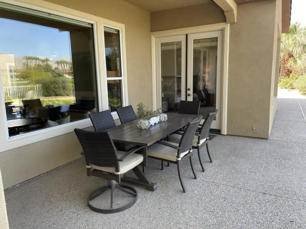 Pet Friendly. RENTED 1-1-2026 thru 3-31-2027.. ..Owner will lower other months during summer. Vacation home is located on the 18th green of The Golf Club at La Quinta, which is a 55 and older community. Nestled close to the mountains. The Mesquite floor plan is one of the largest in the community. 4 bed 4 bath. On the golf course with west mountain views. A large pool & spa to enjoy the beautiful sunsets. The home has very high end furnishings, with TV's in all rooms.The club house has a gym and indoor running track. With Pickleball-Tennis - Arts and crafts room. Restaurant has great food and wonderful views from the patio. You won't be disappointed. Your in a little bit of paradise.