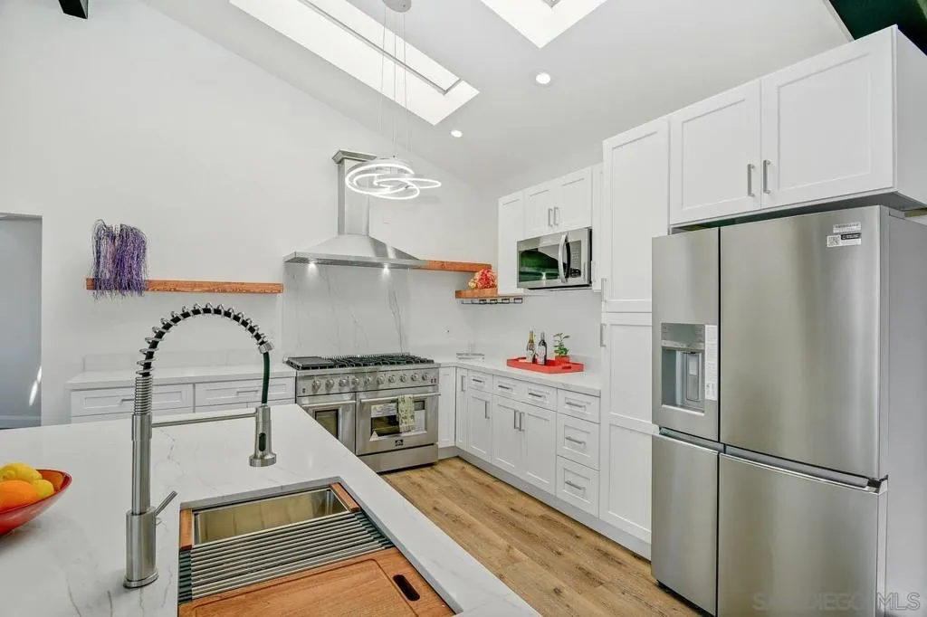 TODAY IS YOUR LUCKY DAY! This Exceptional La Jolla home offers spectacular breathtaking sunset & panoramic views of the rolling hills & the sparkling Pacific Ocean from every room. Recently renovated, 3 bedrooms, 3-1/2 bathrooms plus optional room for added convenience, that can be used as office, gym or as extra room. Spectacular Chef's dream kitchen with oversize island, top of line appliances & custom finishes throughout. This home is the perfect blend of comfort & style. The open floorplan seamlessly connects the living spaces, while large windows flood the home with abundance of natural light, framing the stunning scenery. Step outside to the private terrace with the sound of a water cascade & savor sunsets that will leave you speechless. Large 2 attached cars garage with an storage room & a long driveway for guests. Steps down to beach, shops, restaurants, & up-rated schools. This amazing house is recently renovated by General Contractor Larry Tickel of LT Handyman & Construction Services. It is located in the coveted community of La Jolla, residents will enjoy easy access to a wealth of amenities, including world-class dining, shopping, up-rated schools, and entertainment options. Whether you're strolling along the picturesque coastline or exploring the vibrant cultural scene, there's always something new to discover in this coveted coastal enclave. Experience the epitome of luxury living in La Jolla and create unforgettable memories in a place where every day feels like a getaway.