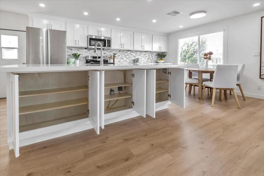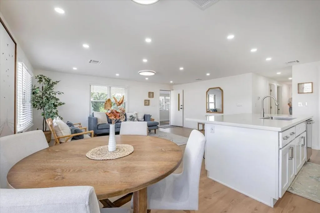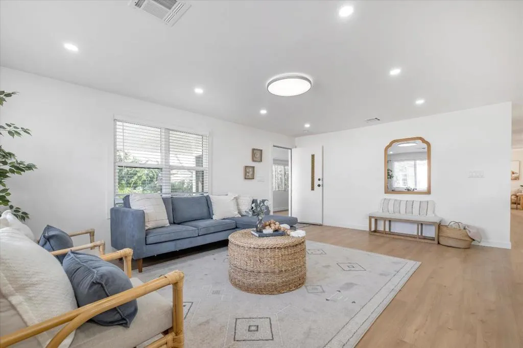 New lower price!! This home has been completely remodeled with gorgeous finishes, and ready for a new owner! The moment you walk into this home,you are greeted w/ an enclosed porch area,that is perfect for a home office,hobby area, or a cozy place to read a book.Then you enter the main house that has an open floor plan.The kitchen Island with stainless steal 1 bowl sink is perfect to add stools so your guest can visit. The quartz counter tops are gorgeous, and there is ample counter tops to display your nice pieces, sit your food out, even have a bar area. There are new dual pane windows also. The laundry hook ups are conveniently located off the kitchen too. There are brand new stainless steel appliances, new flooring through out, can lighting, it's like a brand new home!The bathrooms have tile floors, beautiful custom showers, and vanity's. There are dual sinks in the primary bathroom also. There is a walk in closet in the primary bed/bath as well. 3 bedrooms, and 2 full baths, make this a great size home.Aslider off the primary bedroom is perfect to slip out & enjoy the sunny/private backyard. You will love this home! Low annual State registration as well,no property taxes!Monthly space rent is $3858. Come see this home,you will love it!Age restrictions,call listing agent.