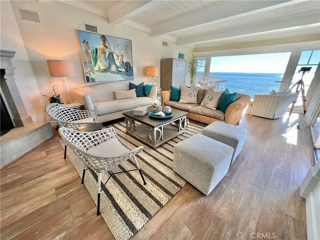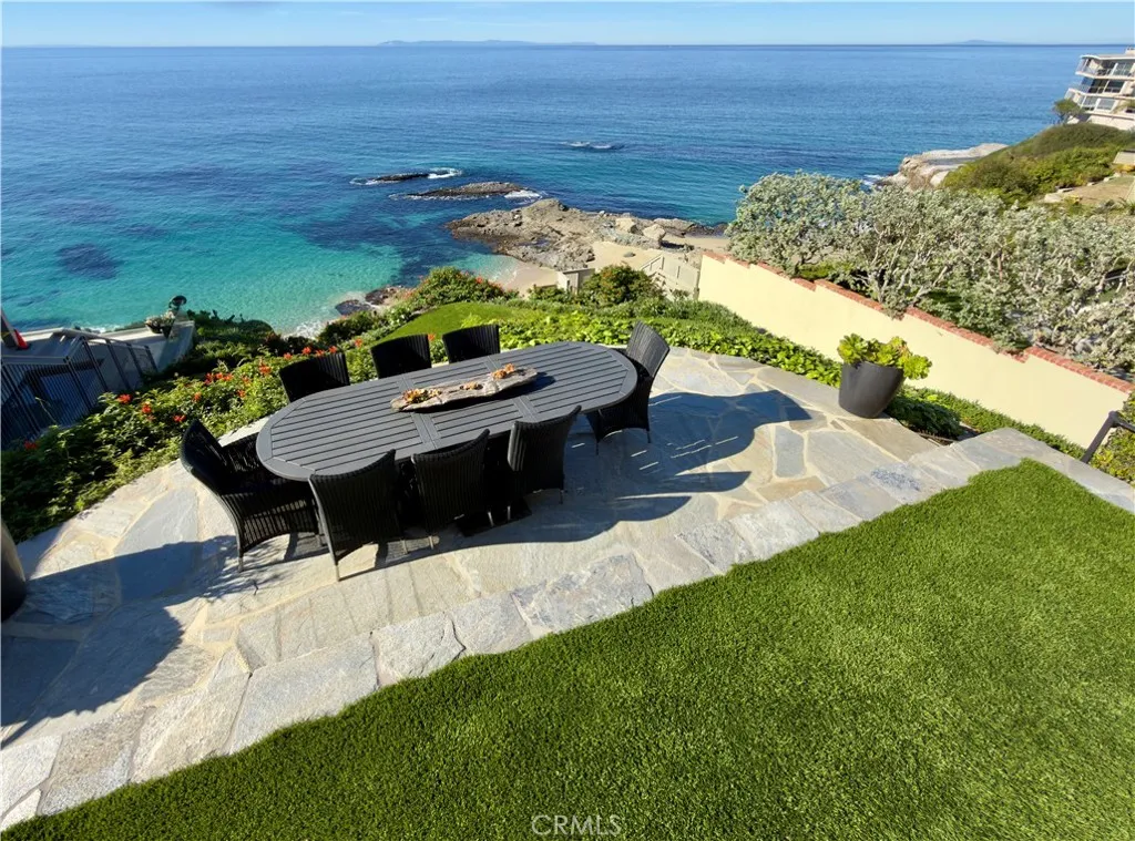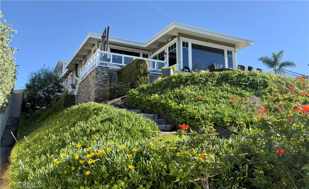 JUST REDUCED TO SELL! OCEANFRONT, Direct Beach Access home with expansive lot overlooking the Coastline, with panoramic views of the crashing surf below. Inspired by the Coastal Homes of Sag Harbor and the Hamptons, this 3 bedroom, 3 1/2 bath Beach House is fully remodeled and beautifully appointed with all designer-selected furnishings included for a turnkey purchase. Generous living and dining areas open to oceanfront patios and a large grass yard with BBQ and outdoor entertaining areas. The mostly flat (nearly quarter-acre) lot overlooks Tablerock Beach with lovely gardens and yard areas, perfect for lounging and sea-gazing. This "beachy-chic" home features a chef's kitchen with bar seating and ocean view dining areas, offering an authentic culinary experience with high-end appliances, an Italian stove, a center island, and plenty of workspace for informal or formal dining service. Three bedrooms with designer finishes and full baths complete the main level. An office area and another bathroom with a step-in shower are conveniently situated at the front entrance. This quintessential oceanfront Beach House is ideal for primary or second home living and also features a two-car attached garage and Central AC. The South Laguna Bluffs location, at the end of a quiet cul-de-sac, is just steps from the South Laguna Village area, with access to the shops and restaurants and just five minutes from downtown Laguna Village galleries, entertainment, and art festivals. This is a must-see home!