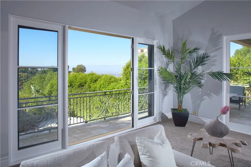 Embraced by rolling hills and mature landscaping on approximately 1.7 acres, this supremely private canyon retreat is one-of-a-kind, offering a spacious 6-bedroom, 4.5-bathroom main residence with an attached 3-car garage, plus a separate, roughly 3,200 square foot detached workshop/garage that can accommodate up to 10 additional cars and it features a bathroom, loft, and professional car lift. Previously used for a classic car collection, RV, and trailer storage, the opportunities for the expansive detached space are endless, but not limited to car enthusiasts. A future guest house, a lofted office space above your home spa/fitness center, a state-of-the-art workshop, and more, are each options for tailoring the space to your lifestyle. As you move from the impressive grounds to the home’s interior, you will find a grand foyer where a skylight, soaring ceilings, and an open floor plan invite you into multiple living and dining areas bathed in natural light. The recently remodeled gourmet kitchen features high-end appliances, custom cabinetry, and a large island. Adjacent to the kitchen, a grand fireplace-warmed living area offers awe-inspiring canyon and downtown Los Angeles city lights views, and opens to a covered patio to enjoy alfresco dining with a built-in barbecue. Completing the main level is a large formal dining room, a secondary living room with a fireplace and balcony, a half bath, and the grand primary suite. This primary suite boasts a private balcony with stunning vistas, two spacious walk-in closets, and a two-way glass fireplace to the bathroom with a soaking tub, dual vanities, and a glass-enclosed shower. Descending one level, discover five generously sized secondary bedrooms (one currently used as a home office complete with custom cherry wood cabinetry), each featuring en-suite bathrooms, sauna and laundry room. Outdoor living is equally impressive, showcasing multiple decks, a fire pit, sparkling pool and spa, plus abundant patio and secluded lawn space for entertaining. Eighty-four (84) seller-owned solar panels add an energy savings benefit. Nestled down a long driveway at the end of a cul-de-sac, this home offers privacy and tranquility beyond compare while remaining close to local shopping, restaurants and cultural attractions. A unique blend of luxury, functionality, opportunity, and natural beauty converge here at 4347 Canyon View Lane.
