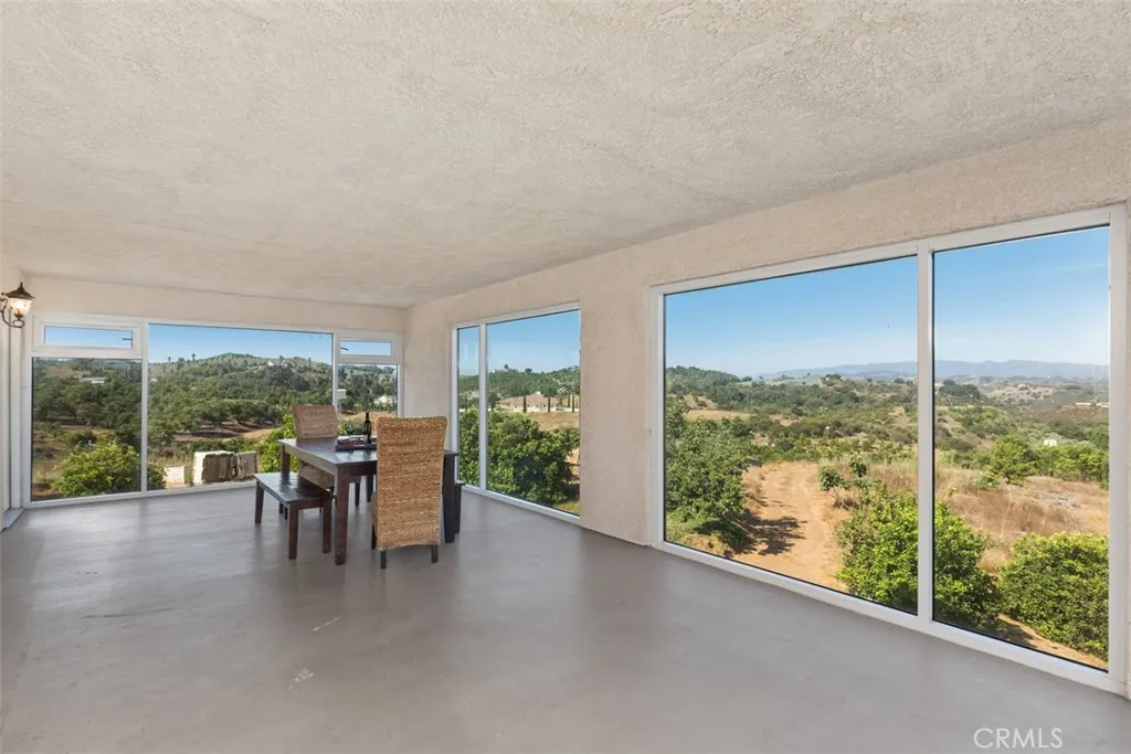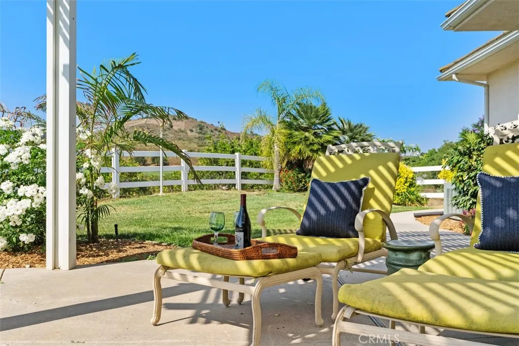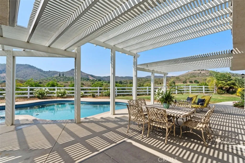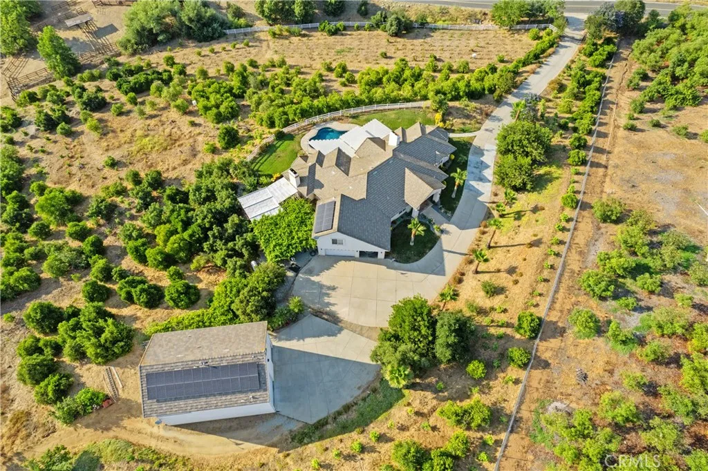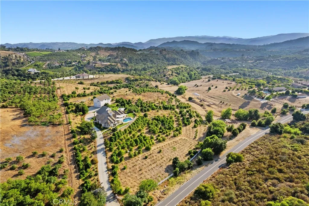 PRICE REDUCTION. This property is located on almost 10 acres in the desirable De Luz community with a 3963 sq.ft. main house plus a 1400 sq.ft. detached guest house. Both homes have amazing views and breathtaking sunsets including views of the local Cross Creek golf course. Other features include a swimming pool and spa, an organic avocado and citrus grove, family orchard, a huge RV garage and a great location with an easy drive to town. The custom built main home has 12ft. high ceilings in the entry with 10ft. ceilings throughout. Features throughout the main house includes wood flooring, custom quality crown molding,built in cabinets and was specifically designed to enjoy the views from almost every room providing lots of natural light throughout. The well designed kitchen includes a large island, granite countertops, newer appliances including double ovens and a sub zero refrigerator plus lots of cabinetry and storage and a walk in pantry. The comfortable family room features a custom built fireplace encased by built in cabinets on either side. The huge private master suite overlooks and opens to the landscaped fenced backyard and pool and spa area. There is a lovely separate formal living room and dining room plus an office with built in cabinets and book shelves. The 4th bedroom with an en suite bathroom is upstairs. Other features include a new water filtration system, newer AC units plus central vac system. The guest house was built in 2006. It features a living room, totally self contained kitchen, two bedrooms plus a full bathroom. It also has an outdoor enclosed living area with surrounding glass windows where you can enjoy amazing views and breathtaking sunsets.It has its own laundry facilities located downstairs in the 40x30 ft. RV garage that also has a workshop area and attic storage. The certified organic grove includes many newer trees including avocados, Kara Kara oranges, pink lemons, and pixi tangerines with almost 5 acres of land to plant a vineyard or add to the grove. Also enjoy a family orchard and vegetable garden including table grapes, lemons, berries, apples, peaches, plums, nectarines, pears, red and sweet onions and tomatoes. The property is completely fenced with a custom gate. A leased solar system for both homes. The main home has a 3 car garage plus there is lots of parking space. This property offers a great lifestyle and location close to the city of Temecula Old town and Wine Country to also enjoy.