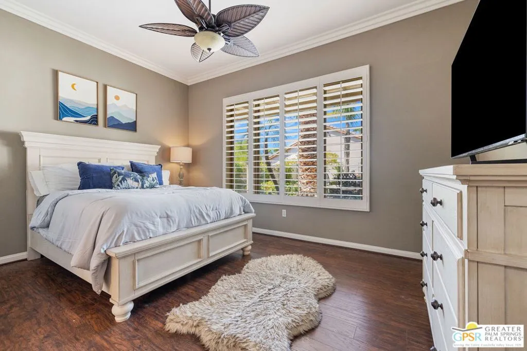 *** Monthly Rates: $5,450 per month from November to February. Availability: Only from November 2026 through February 2027. *** Welcome to your dream retreat at Sun City Shadow Hills, where comfort, community, and the best of desert living come together! This west-facing San Rafael model home with a super spool is ready for you to enjoy. This is an active 55+ community where at least one person leasing the home needs to be 55 years or older. Step into a perfect blend of indoor and outdoor living in this beautifully appointed home. Enter through a large foyer to discover an open floor plan with a wall of windows, filling the space with natural light and offering stunning views of the desert landscape. The Great Room features a cozy fireplace, crown molding, and an overhead fan, creating a welcoming and spacious ambiance. The kitchen is equipped with all-new appliances, plenty of counter space, and a walk-in pantry, perfect for all your culinary needs. Enjoy meals in the dining area with a slider to the backyard. This home offers versatility with a den that can be used as an office, formal dining room, or even a sleeping area, thanks to its double doors. The master bedroom, located on one side of the house, has its own slider to the backyard, dual vanities, a soaking tub, a shower, and a spacious walk-in closet. The other two bedrooms share a Jack and Jill bathroom, and plantation shutters and overhead fans are throughout the home for added comfort. A powder room is available for guests. The garage is a full three-car garage with ample storage cabinets and a new water heater, and the newer A/C ensures you stay cool. The backyard is a true oasis, featuring an oversized patio, palm trees, a mountain view, Alumawood awnings, solar shade, and a large spool with brand-new equipment perfect for enjoying the warm desert evenings. Sun City Shadow Hills is a premier 55+ active adult community offering an unparalleled lifestyle filled with endless amenities and activities. Tenants will have access to all community amenities, including two championship golf courses, state-of-the-art fitness centers, swimming pools, tennis and pickleball courts, and a wide variety of clubs and activities. Please note that playing golf will require an additional fee. From creative arts and crafts to lively social events and fitness classes, you'll find endless ways to stay active and engaged. Embrace the vibrant and active lifestyle that Sun City Shadow Hills offers, with its beautiful surroundings, friendly community, and numerous amenities. Don't miss this opportunity to make this your perfect seasonal retreat in the heart of the Coachella Valley.