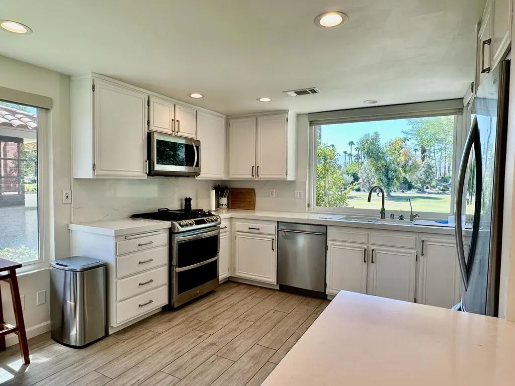 This charming end unit offers 2 bedrooms PLUS den that owner has added a bed to, 2 baths, all on one level with breathtaking south-facing mountain views overlooking the golf course. Just a short walk to the clubhouse and tennis courts, this condo is perfectly situated for an active lifestyle.You won't find a better view at this price! The kitchen features updated cabinets, newer appliances, and elegant granite countertops, making it a delightful space for cooking and entertaining. The large patio is ideal for soaking in stunning sunsets while you relax. Monterey Country Club boasts a fitness center, clubhouse, tennis courts, and golf amenities for your enjoyment. Don't miss out on this incredible opportunity--act fast!