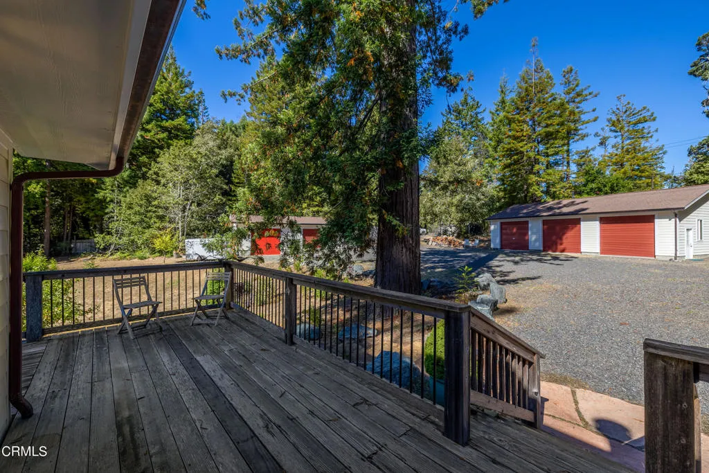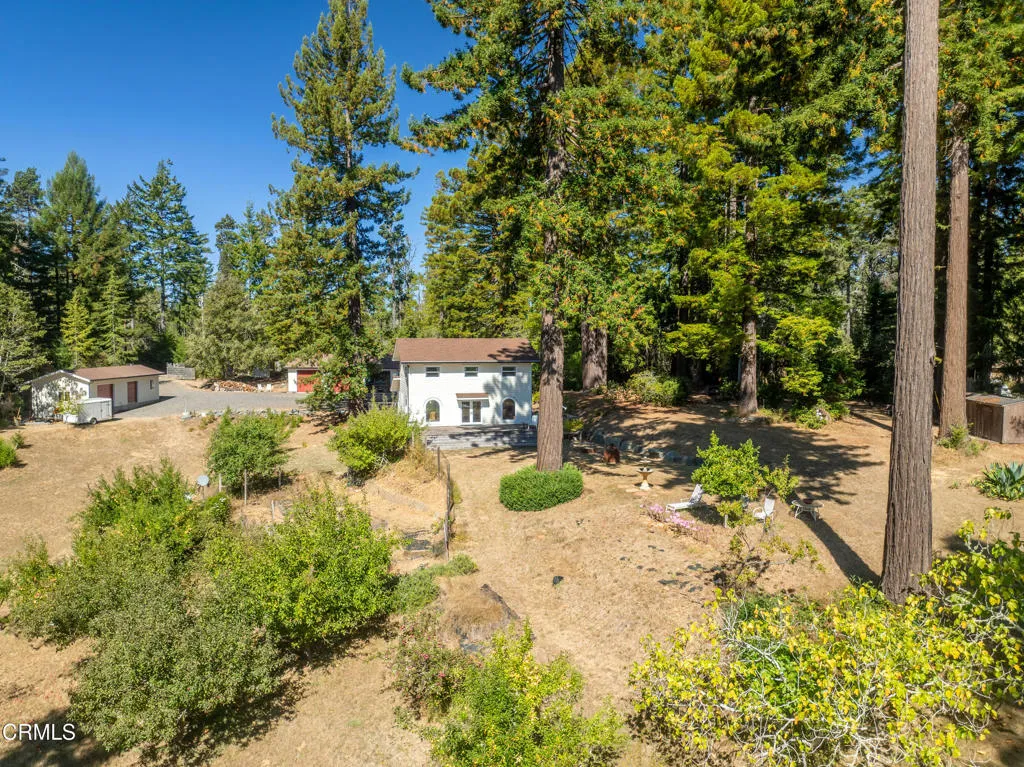 Secluded Mendocino Coastal Retreat Near Highway 1. Conveniently located minutes from Highway 1 and the charming, historic town of Mendocino, this private, elegant residence blends practical luxury with coastal serenity. Built in 2002, but feels like new! A permitted ADU sits at the heart of the property, offering sophisticated income potential or a private guest suite, each with its own power and propane meters to preserve the main residence's unobstructed views. The main home itself is designed for seamless indoor-outdoor living, with a wraparound redwood deck flowing to a flagstone patio crowned by a tasteful fire pit and shaded by towering coastal redwoods for serene privacy.A four-car detached garage provides ample storage, versatile workspace, and generous parking options. With five roll-up doors, a sleeping loft, built-in office area, and additional space for hobbies or entertaining, it's ideal for a home workshop, collector cars, or multi-use living.A gated entrance with extensive gravel parking enhances privacy and convenience, including generous room for RVs and trailers. The Albion redwoods frame a mature orchard and thoughtfully finished interiors, while climate control is reliable with a Fujitsu mini-split system and a propane/electric Runtal heater to balance comfort on cooler nights. Two robust wells supply ample water for the residence and irrigation, supporting a thriving garden and plantings.This Mendocino Coast gem blends practical features with timeless beauty, offering luxury, comfort, and seclusion in a coastal, tranquil setting.