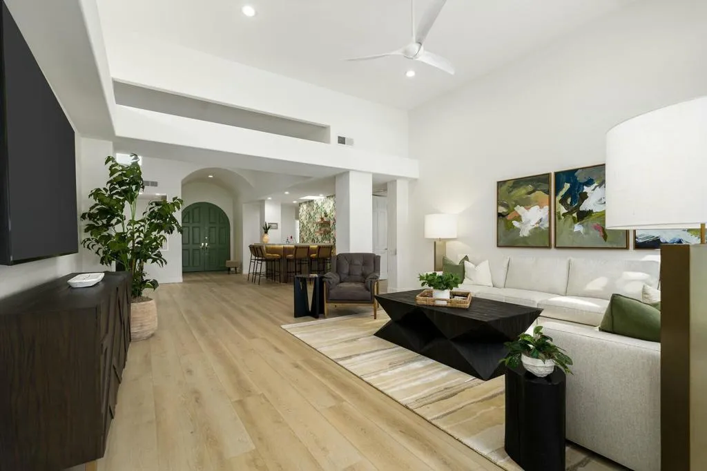 Leased Jan./Feb. 2026.~ Stunning Furnished Home with Spectacular South Mountain and Fairway Views! Enjoy breathtaking sunsets and serene mountain vistas from this gorgeous 3-bedroom, 4-bath home. Welcoming you is a beautiful private courtyard with sitting area. A spacious open living concept; a gorgeous appointed interior, ideal for entertaining friends and family. Architectural Highlights; Entry foyer, high ceilings, elegant vinyl plank flooring and remote-controlled blinds throughout the home. The Living Room features a large TV and a wet bar complete with a wine refrigerator. Gourmet Kitchen is equipped with an oversized island, quartz countertops and top-of-the-line Bosch stainless steel appliances including double ovens. Enjoy meals in the cozy Breakfast Nook or at the Dining table for 8 or relax in the Den by the cozy Fireplace. Luxurious Master Suite with a King bed, private patio access, large shower, spa bath, and a spacious walk-in closet. Guest Rooms: 2 additional Guest Rooms feature Queen-size beds and updated en-suite Baths. Step out to the expansive outdoor Patio featuring dining for 6, perfect for enjoying the picturesque Views of the 18th fairway and surrounding Mountains. Just steps away from the community pool. Don't miss out on this extraordinary opportunity to lease a home that combines elegance, convenience, and stunning natural beauty. Minutes to El Paseo for Shopping and Dining. For Month of March only $12,000.