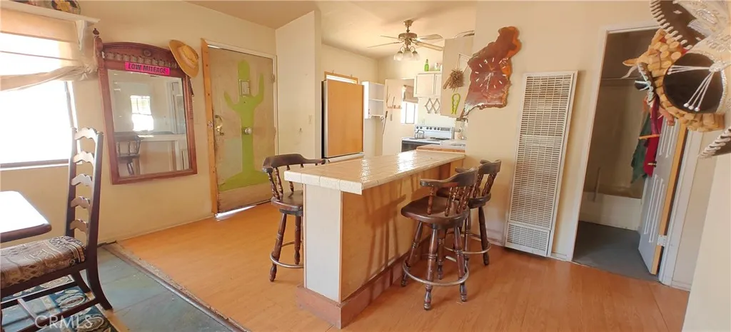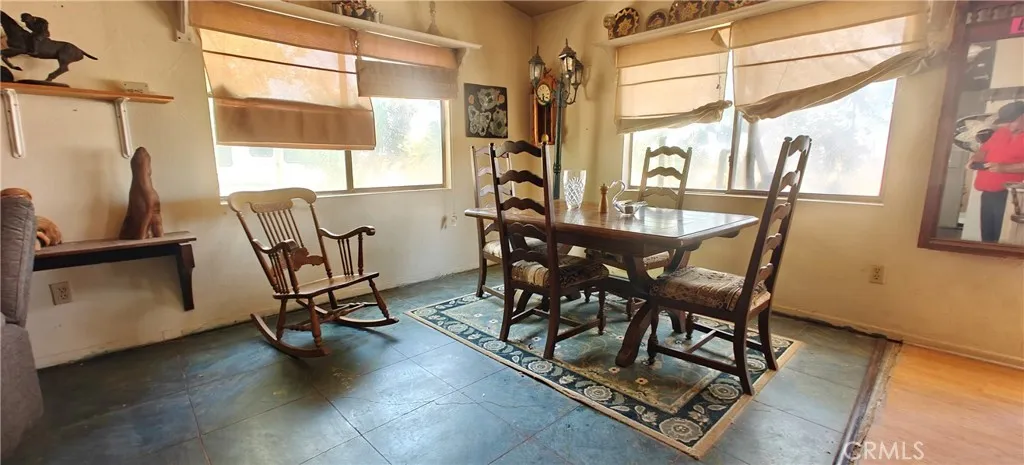 This charming home sits on a .45-acre lot, offering 1,102 square feet of living space with 2 bedrooms and 2 bathrooms, built in 1984. The property has a large backyard with stunning views of Joshua Tree National Park, perfect for outdoor enjoyment. Located at the end of a quiet street on the south side of Highway 62 in 29 Palms, it’s ideally situated for both peace and convenience. The Tortious Rock Casino is just a short 5-minute drive away, while the Marine Base is 15 minutes by car. Additionally, Theater 29 is located nearby, providing easy access to local entertainment. Buyer to verify square footage. A fantastic location for those looking for both tranquility and accessibility! This 2-bedroom, 2-bathroom home offers a spacious bonus room that can easily be converted into a third bedroom. It also features two double garages with a 3/4 bath and additional space between them that could be used for a kitchen or other purposes. Located near the park with stunning mountain views, this property provides a fantastic opportunity to own a home in a desirable location at an "as-is" price, allowing you to make updates and personalize it to your liking. With a new roof installed in 2022, mature trees, and desert landscaping, this home offers a peaceful and picturesque setting. Ideal for those looking to invest in a property that combines both tranquility and the potential for customization.
