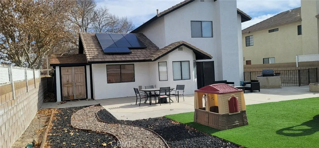 A SPACIOUS, WELL MAINTAINED, 4 BR Corner Lot Home including the Guest Room/Office downstairs is a MUST SEE! Located in a quiet westside community that backs up to the Prime Desert Woodland Preserve and has great curb appeal and views. Upon entry, an Open Living room and dining room start the visual flow of comfortability. Upstairs Main Bedroom has barn doors to the master bath area, which has dual sinks, and a separate tub and shower, and dual closets. Two additional sizeable rooms upstairs. Upgrades throughout the home include fresh paint, Custom racks and a pantry with a breakfast nook with built in seating and storage cabinet in the kitchen area. Hard wood flooring and wide baseboards throughout the home flows into the family room where you'll find a nice fireplace and a great view to the large back yard with upgraded turf for low maintenance. Indoor laundry room with storage cabinets. Plenty of storage in the back yard includes two sheds (one is a work shed). Built in BBQ grill and fire pit area and plenty of concrete for lounging and entertaining. Paved side yard.