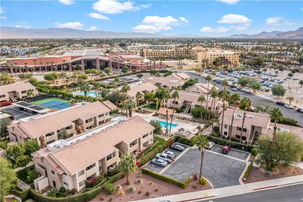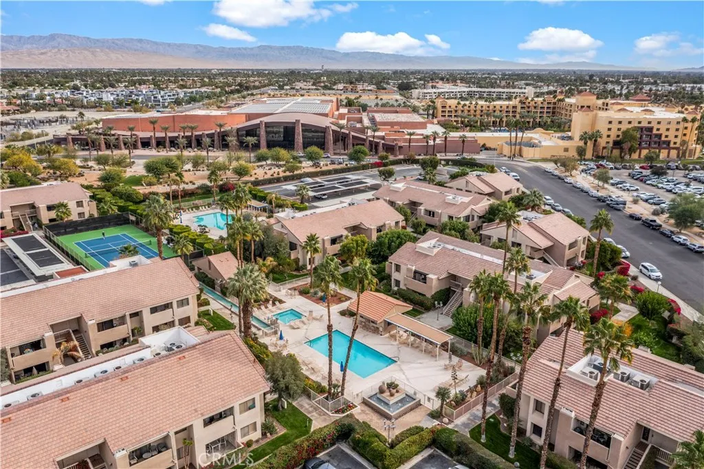 Experience your own desert retreat at Plaza Villas, a highly sought-after community nestled between the Agua Caliente Casino and the Convention Center in the heart of vibrant downtown Palm Springs. This prime location offers the perfect balance of convenience and investment potential, with a 7+ day minimum for short-term rentals, making it an exceptional income-generating opportunity. Whether you're looking for a personal getaway or a profitable property, this 2-bedroom, 2-bathroom condo is the ideal choice. Inside, you'll find a spacious open floor plan featuring a large living and dining area, along with a fully equipped kitchen. Additional perks include a full-size indoor laundry and a balcony with stunning mountain views. The well-maintained, security-gated community boasts lush landscaping with fragrant citrus trees, two sparkling pools, spas, and tennis courts—all set against breathtaking mountain vistas. HOA fees cover landscaping, water, trash, cable, and internet, providing ease and peace of mind. Assigned covered parking and guest parking are conveniently available on-site. Plaza Villas offers both tranquility and easy access to all the excitement that Palm Springs has to offer. Don't miss this rare opportunity to own a piece of paradise in downtown Palm Springs!