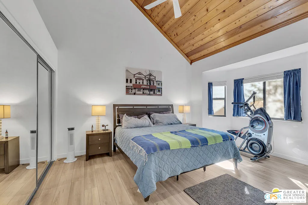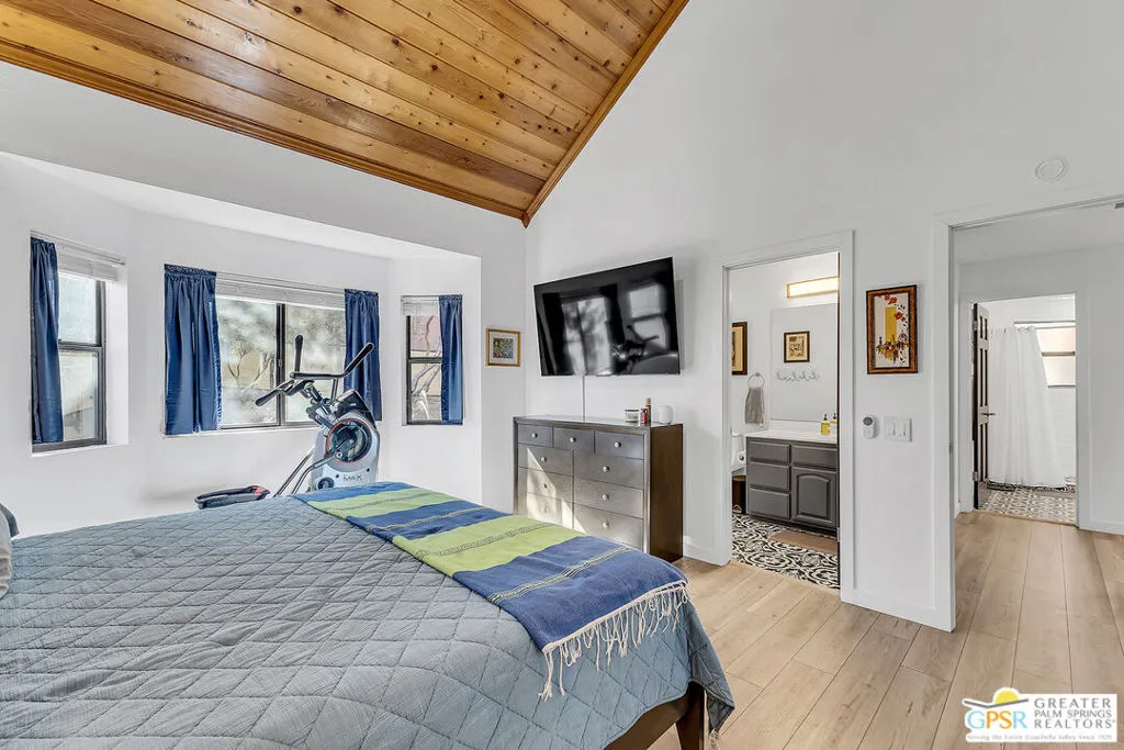 This lovely home is only 5 minutes away from the center of town, offers the best of both worlds; close enough to shops, eateries, entertainment, and amenities, yet far enough to enjoy the peace you seek in a mountain retreat. This house has lots of room for everyone. 2bd + a loft bedroom w/closet + a bonus room off of closet big enough for a bd/craft/hobby/storage room. This lovely home was recently updated w/ many note-worthy upgrades: new roof in 2022, smart garage opener, door-entry keypads, AC, heating system, kitchen, bathrooms, and all new window shades. Through the front door, you are greeted w/ a family room w/ eye-catching cathedral-height tongue and groove ceilings. The open-concept living space is ideal for entertaining. The freshly painted walls really increase the brightness that the natural lighting from all the windows provide. Carefully chosen laminate flooring throughout living space, dining, kitchen, and bedrooms ties it together beautifully. The large laundry room doubles as a mudroom, and access to the attached large 2-car garage. Comes fully-furnished. Off the extra large deck you can enjoy peek-a-boo views of the alpenglow on Tahquitz Peak. Truly a must see.