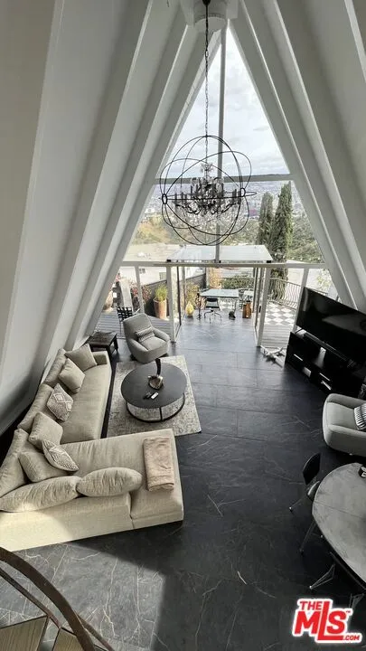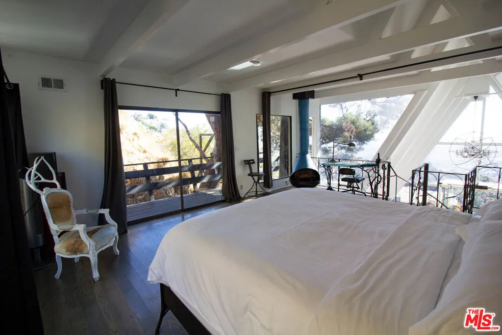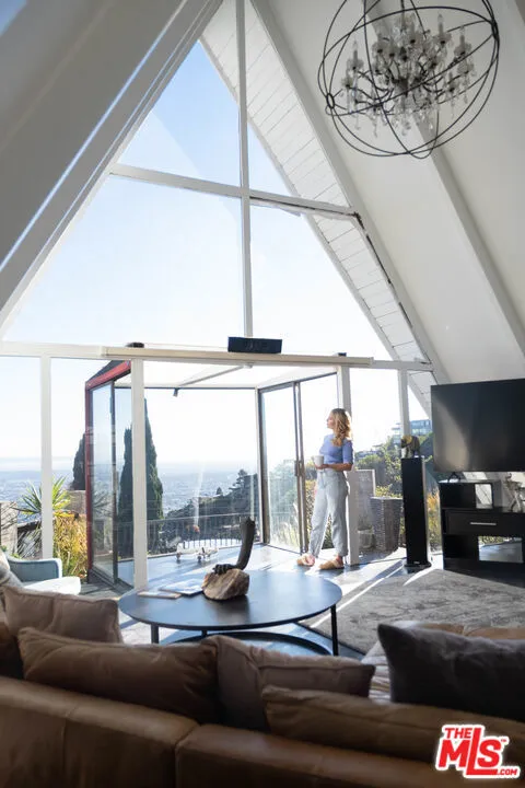 Hollywood Hills Zen Home with Jetliner Views Located above Sunset Plaza, this eclectic oasis features spectacular views of LA. It's the perfect retreat for singles and couples. This architecturally distinctive home features walls of glass and A-frame structure consisting of 2 beds, 2 baths & an open plan living area. With large decks wrapping around all 4 sides of the home, the outdoor area blends seamlessly with the homes interior space. The deck includes a large hot tub, gas grill, outdoor dining, several chaises and chairs, a fire feature, lush landscaping and tropical plants thruout. The guest bedroom features a queen-size bed, bathroom ensuite and large windows looking out to the deck and LA skyline. Ascend the spiral staircase to find the beautifully appointed master suite featuring a separate sitting area, gas fire place, king-size bed and bathroom ensuite. Double doors open from the master bedroom to the spacious back patio with a gorgeous outdoor chandelier. AVAILABLE FOR SHORT TERM AND MONTHLY - PLEASE INQUIRE FOR RATES.