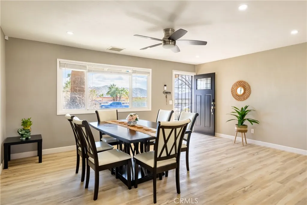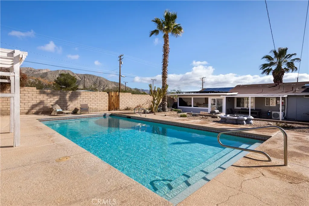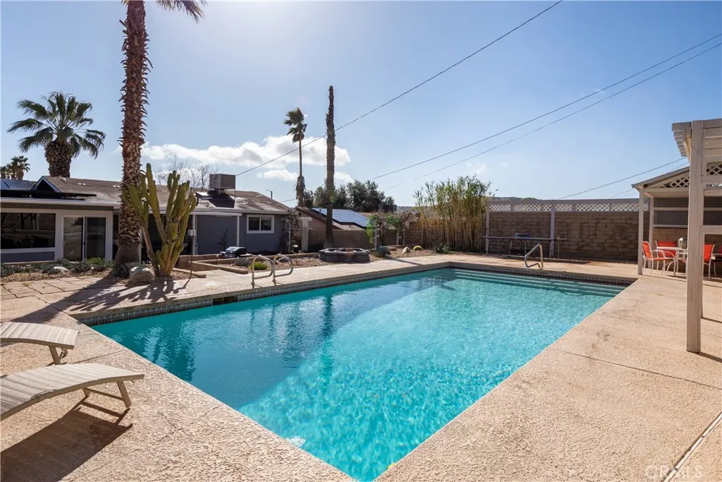 Property is back on the market after prior buyer failed to perform. Seller is motivated and ready to proceed with a qualified buyer. Welcome to your dream oasis in the desert! This stunning, fully furnished desert pool house, updated in 2022, offers the perfect blend of modern luxury and serene tranquility. Featuring 3 bedrooms and 2 bathrooms, this home is ideal for those seeking comfort and style. Step inside to discover an open floor plan with contemporary finishes, sleek furniture, and high-end appliances. The living area flows seamlessly into the gourmet kitchen, complete with granite countertops and modern appliances. Each bedroom is a sanctuary of relaxation, boasting plush bedding and ample storage. Outside, the private pool area beckons with its sparkling water, perfect for cooling off on hot desert days. The beautifully landscaped backyard is an entertainer's paradise, featuring a spacious patio, BBQ area, and cozy fire pit for evening gatherings under the stars. This property features a leased solar system with a monthly payment of $176, which the buyer must assume. Please note that the hot tub in the backyard is excluded from the sale. With its prime location and modern amenities, this property also holds excellent potential as an Airbnb rental, providing a lucrative opportunity for savvy investors. Don't miss the chance to own this modern desert retreat. Schedule your viewing today and make this exquisite pool house your new home!