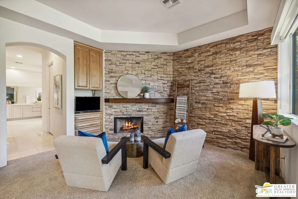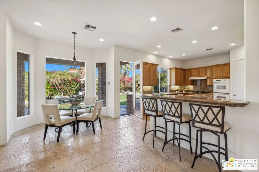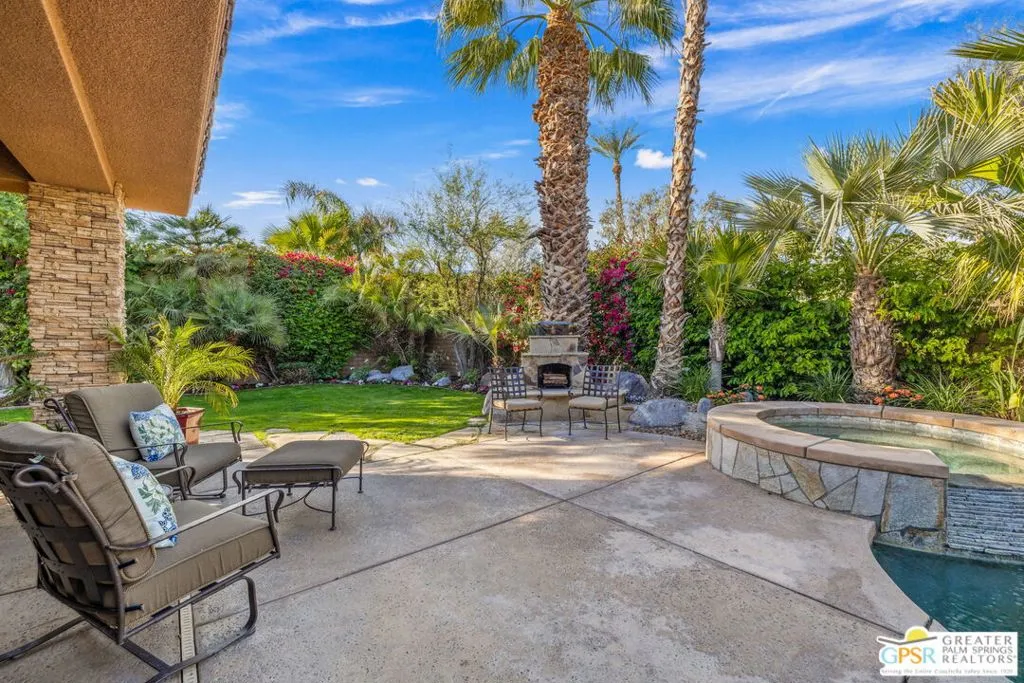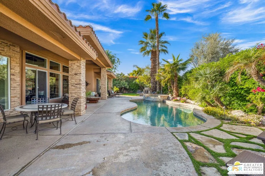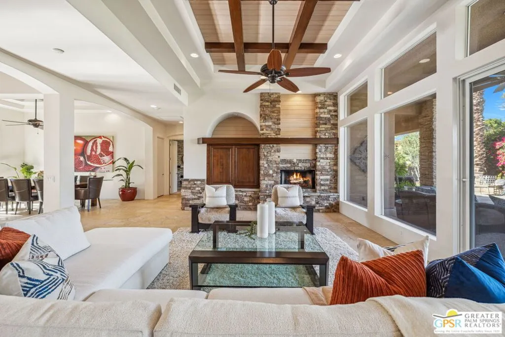 *Booked January 2027-May 2027.* Discover refined desert living in the heart of Rancho Mirage behind the gates of Ivy League Estates, where privacy, elegance, and resort-style comfort come together in one of the area's most desirable communities. This expansive 5-bedroom, 5.5-bath residence spans over 4,200 square feet and includes a private detached casita, offering exceptional space and flexibility for guests or a home office. Inside, soaring 16-foot beamed and vaulted ceilings designed by Guy Drier, smooth-finish walls, and travertine flooring create an elegant desert retreat. The gourmet kitchen features an oversized island, walk-in pantry, breakfast nook, and seamless indoor-outdoor flow to the covered patio. Outdoor living shines with a saltwater pool and spa, outdoor kitchen, and multiple spaces ideal for entertaining or relaxing.The Primary Suite occupies its own private wing with direct pool access and includes a fireplace, sitting area, oversized walk-in closets, and a spa-inspired bath. Three additional ensuite bedrooms are located on the opposite side of the home. The detached casita features a fireplace, kitchenette, full bath, and private patio.Situated on one of the largest lots in the community with a courtyard fire pit, mountain views, and a three-car garage with epoxy flooring and storage. Close to Eisenhower Medical Center, El Paseo, golf, dining, shopping, and entertainment.**Seasonal rates apply: January-March $12K/month; November, December, April, May $10K/month; June-October $8K/month.**