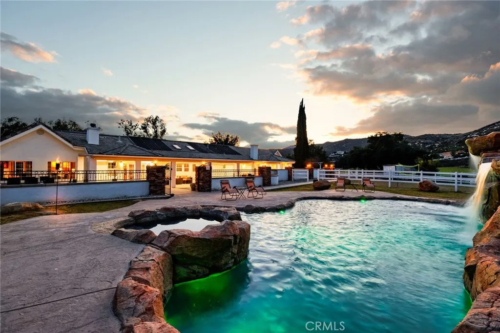 DRASTIC PRICE REDUCTION! VERY MOTIVATED SELLER! IMAGINE WHAT IT WOULD BE LIKE TO OWN THIS MAGICAL ESTATE RETREAT, AIRBNB, SHOWING AN APPROXIMATE INCOME OF OVER $175,000 PER YEAR, SURROUNDED BY OAK TREES LOCATED IN THE STUNNING COMMUNITY OF LA CRESTA, MURRIETA. The property lies on 5 acres (approx). This estate home is designed for an Airbnb and is completely fenced. A creek also runs alongside the property at the bottom of the hill, adding to the dynamic and beautiful landscape of La Cresta. This newly remodeled vacation home is a licensed Airbnb and has been in operation for 1 1/2 years. Escape to this gorgeous Wine Country retreat for an unforgettable experience! The home has 5 bedrooms and 10 beds designed to accommodate up to 20 guests, making it the ideal place for large group getaways. The home has a game room with a pool table, arcade cabinets, and a large flat-screen TV. There is also room on the property to build second home. For a more relaxed atmosphere, enjoy the oversized sofa in the living area or play a game of poker with friends. The kitchen is fully equipped for any meal you can imagine. Dine outdoors on the patio or cozy up inside for a meal with family and friends. The patio has a BBQ area for those that like to grill while taking in the breathtaking scenery around the property. The master suite has a King-sized bed, built-in trundle beds, and a luxurious bathroom with a stand-up shower and jetted tub. You'll find two guest bedrooms with bunk beds, each featuring a loft area. The rear bedroom serves as a cozy lounge area with a pull-out bed. Property has cross fencing and corrals. Bring your horses, dirt bikes, ATVs, and other outdoor toys to enjoy the wide-open space, as well as equestrian trails for horseback riding and hiking. Discover your own private haven in the backyard, with a stunning rock pool and spa with a waterfall and waterslide for hours of fun or relaxation. The backyard has a volleyball court and horseshoe pit for fun & games. The backyard has 3 firepits for evening gatherings. For convenience, the property includes a garage with space for up to six vehicles, making parking easy for everyone. Entire home is solar-powered. This property offers the perfect balance of fun and tranquility, while also providing a yearly income. Situated in a highly upscale community offering many amenities, dining & entertainment! This is a one-of-a-kind opportunity! Schedule your showing today!