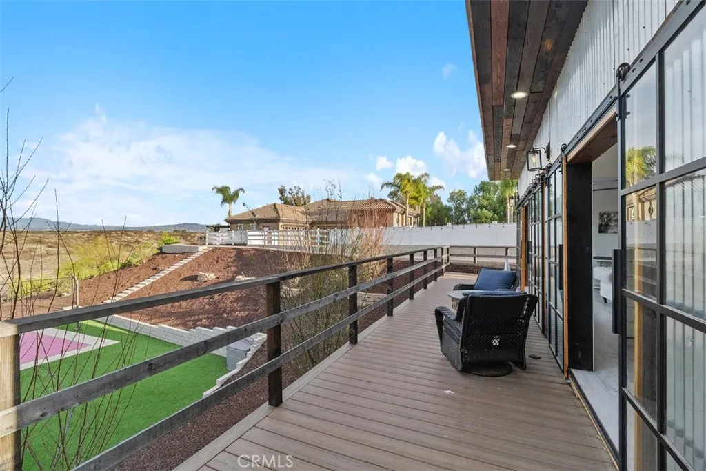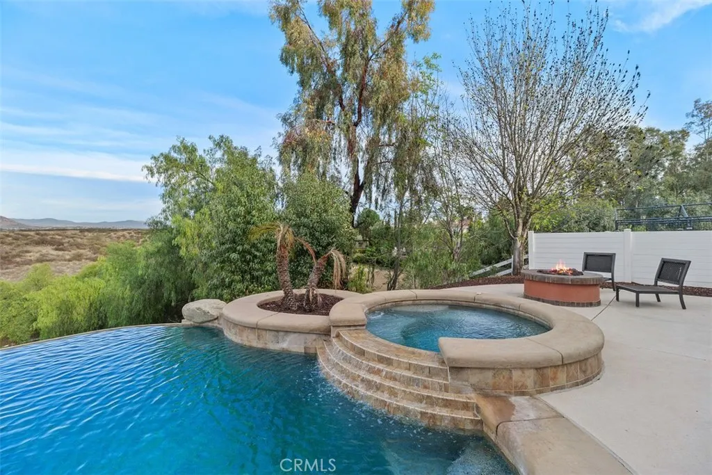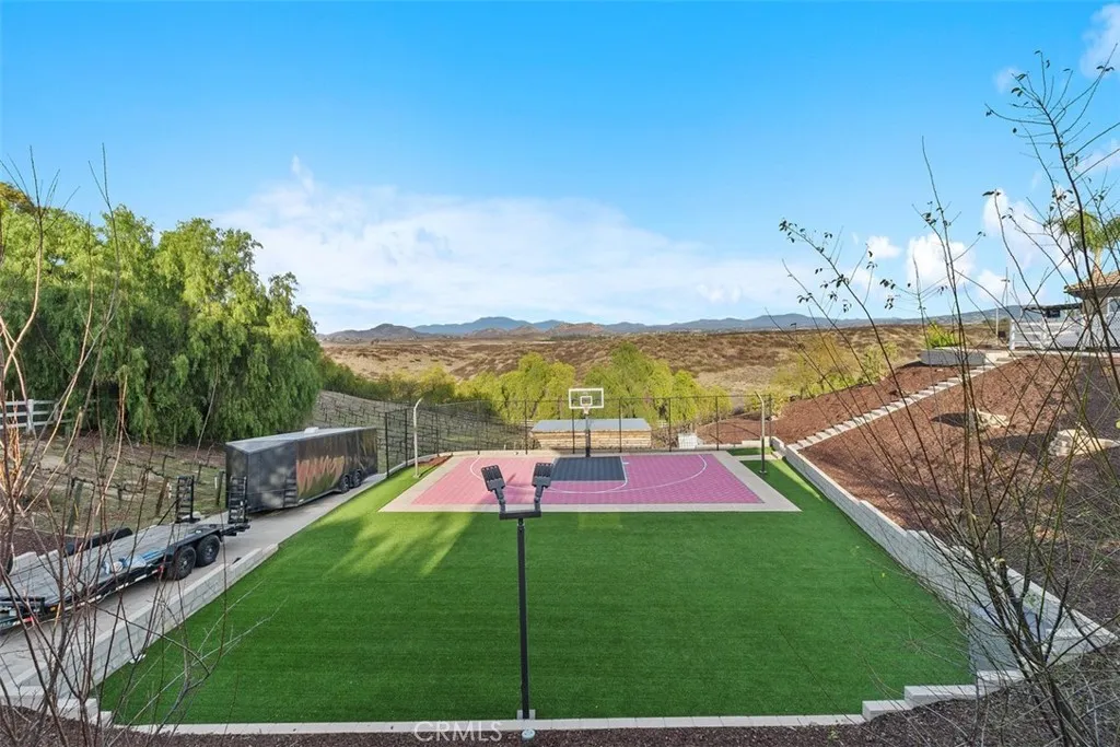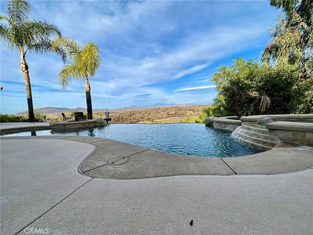 Passing by several of Temecula’s most esteemed wineries on Rancho CA Rd and then proceeding onto Calle Contento N you will arrive at this remarkable gated single-story residence with stunning views at the end of a cul-de-sac in the heart of Temecula Wine Country. As you walk through the front entry doors you are greeted by a captivating view of the pool and the rolling hills setting a tone of elegance that permeates the interior.The infinity-edge pool with a sun shelf and spa overlooks the rolling hills behind the property and a built-in fire pit provides warmth and a cozy ambiance under the star-filled sky making it an ideal spot for evening leisure.The family room features a custom built-in entertainment center and fireplace. The open floor plan seamlessly connects the family room to the kitchen providing a spacious and inviting area for family and friends to congregate.The built-in BBQ area boasts two large granite bars, high-top seating, and two mounted outdoor televisions under a covered Aluma wood awning that overlooks your working vineyard and an assortment of fruit trees, creating the perfect setting for outdoor gatherings and celebrations.For the ultimate movie-watching experience, the fully equipped high-end home theater is furnished with luxury staged theater seating ensuring that you can enjoy films in style and comfort.The master bedroom and spacious bath share a cozy fireplace and feature a large walk-in closet with custom cabinetry and a central island.Three of the four bedrooms are equipped with en-suite bathrooms, providing convenience and privacy for family members or guests. The fourth bedroom is currently utilized as an office with a double door entry.For car enthusiasts, the 6+ car garage offers ample space for your collection. One of the 2-car garages is equipped with a tall (RV-sized) entry door, perfect for installing a car lift or additional storage.This magnificent estate offers ample space for RVs, off-road vehicles, boats, trailers, and more. The property also features a lighted sports court suitable for basketball, pickleball/tennis. There is a flat turf area with plenty of room for outdoor games. A she shed offers an ideal solution for hosting guests or providing a private retreat. With its private entry and situated to overlook the sports court and vineyard it ensures visitors can enjoy the tranquility of wine country alongside the excitement of outdoor activities. Features a living room, bedroom, full bath and kitchenette.