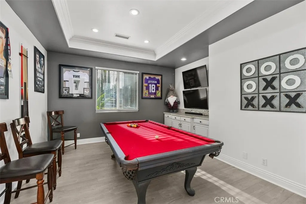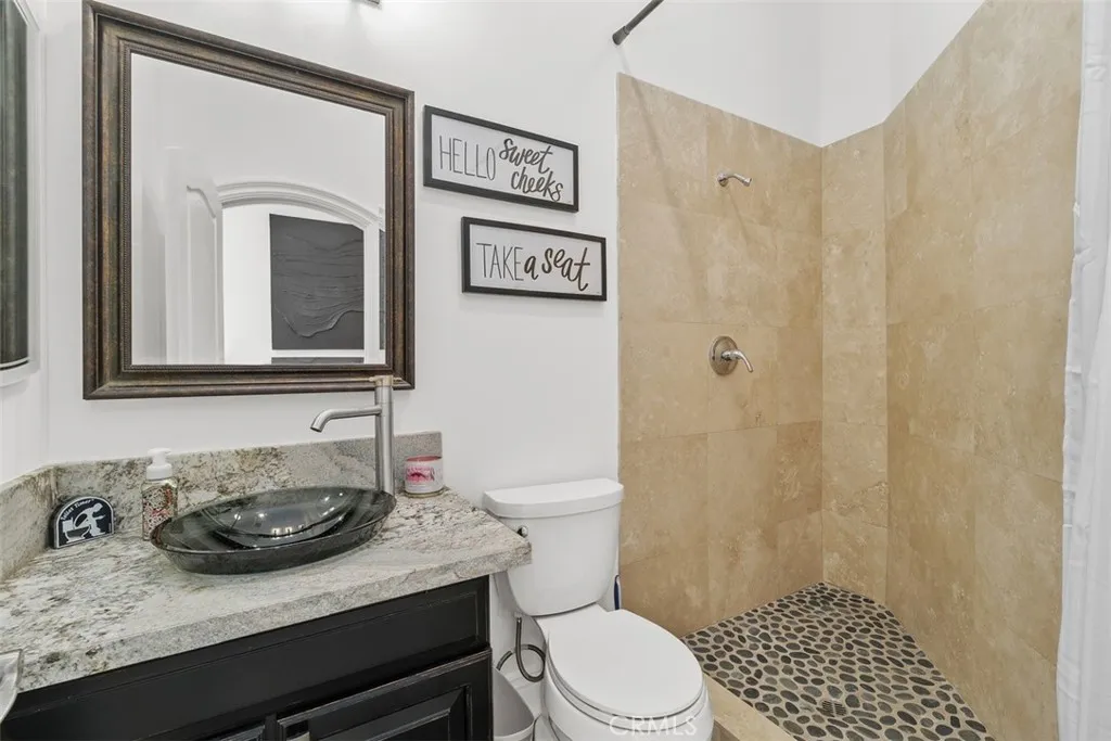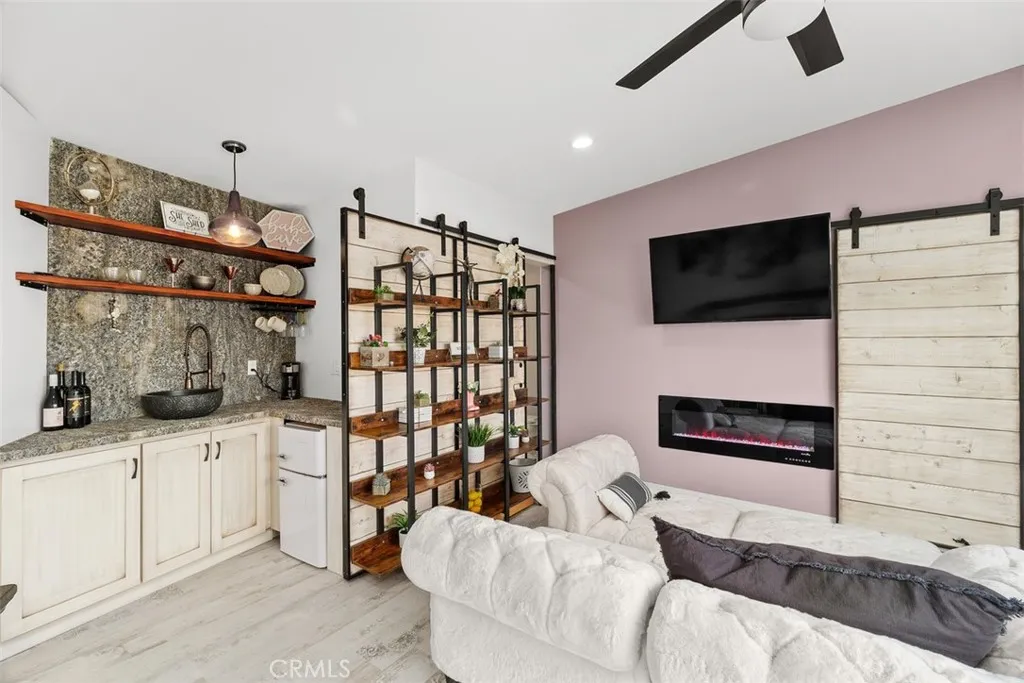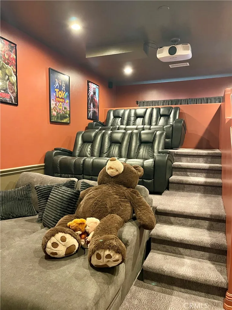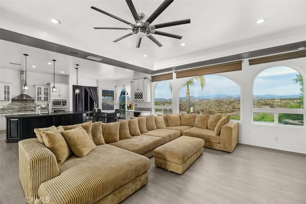 Passing by several of Temecula’s most esteemed wineries on Rancho CA Rd and then proceeding onto Calle Contento N you will arrive at this remarkable gated single-story residence with stunning views at the end of a cul-de-sac in the heart of Temecula Wine Country. As you walk through the front entry doors you are greeted by a captivating view of the pool and the rolling hills setting a tone of elegance that permeates the interior.The infinity-edge pool with a sun shelf and spa overlooks the rolling hills behind the property and a built-in fire pit provides warmth and a cozy ambiance under the star-filled sky making it an ideal spot for evening leisure.The family room features a custom built-in entertainment center and fireplace. The open floor plan seamlessly connects the family room to the kitchen providing a spacious and inviting area for family and friends to congregate.The built-in BBQ area boasts two large granite bars, high-top seating, and two mounted outdoor televisions under a covered Aluma wood awning that overlooks your working vineyard and an assortment of fruit trees, creating the perfect setting for outdoor gatherings and celebrations.For the ultimate movie-watching experience, the fully equipped high-end home theater is furnished with luxury staged theater seating ensuring that you can enjoy films in style and comfort.The master bedroom and spacious bath share a cozy fireplace and feature a large walk-in closet with custom cabinetry and a central island.Three of the four bedrooms are equipped with en-suite bathrooms, providing convenience and privacy for family members or guests. The fourth bedroom is currently utilized as an office with a double door entry.For car enthusiasts, the 6+ car garage offers ample space for your collection. One of the 2-car garages is equipped with a tall (RV-sized) entry door, perfect for installing a car lift or additional storage.This magnificent estate offers ample space for RVs, off-road vehicles, boats, trailers, and more. The property also features a lighted sports court suitable for basketball, pickleball/tennis. There is a flat turf area with plenty of room for outdoor games. A she shed offers an ideal solution for hosting guests or providing a private retreat. With its private entry and situated to overlook the sports court and vineyard it ensures visitors can enjoy the tranquility of wine country alongside the excitement of outdoor activities. Features a living room, bedroom, full bath and kitchenette.