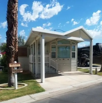 Welcome to this 2007 Park Model with a California Room attached. It has a very Open feeling with a large eating area, great kitchen and added living space for entertaining and TV room. It comes Turnkey! It offers Appliances, Gas Range with Microwave above stove, & fridge. Laminate Flooring through-out except in bedroom which offers carpet. The W/D is located in the Shed in back of PM. Covered Parking. Rancho Casa Blanca (RCB) features a beautifully landscaped 80-acre property with 801 individual Park Model homes/or RV sites, Two large clubhouses that function as social hubs & 4 satellite buildings with laundry facilities, mailboxes, heated pools & relaxing spas. As an owner you will enjoy FREE GOLF on your 18-hole par 3 golf course, a 9-hole putting course, 2 practice chipping/putting greens, 6 heated pools/spas, 2 tennis courts, 8 pickle ball courts, shuffleboard courts, horseshoe pitch, fitness center & over 60 Clubs & Classes. This park has a limit of 270 day occupancy (not consecutive) out of 365 calendar year.