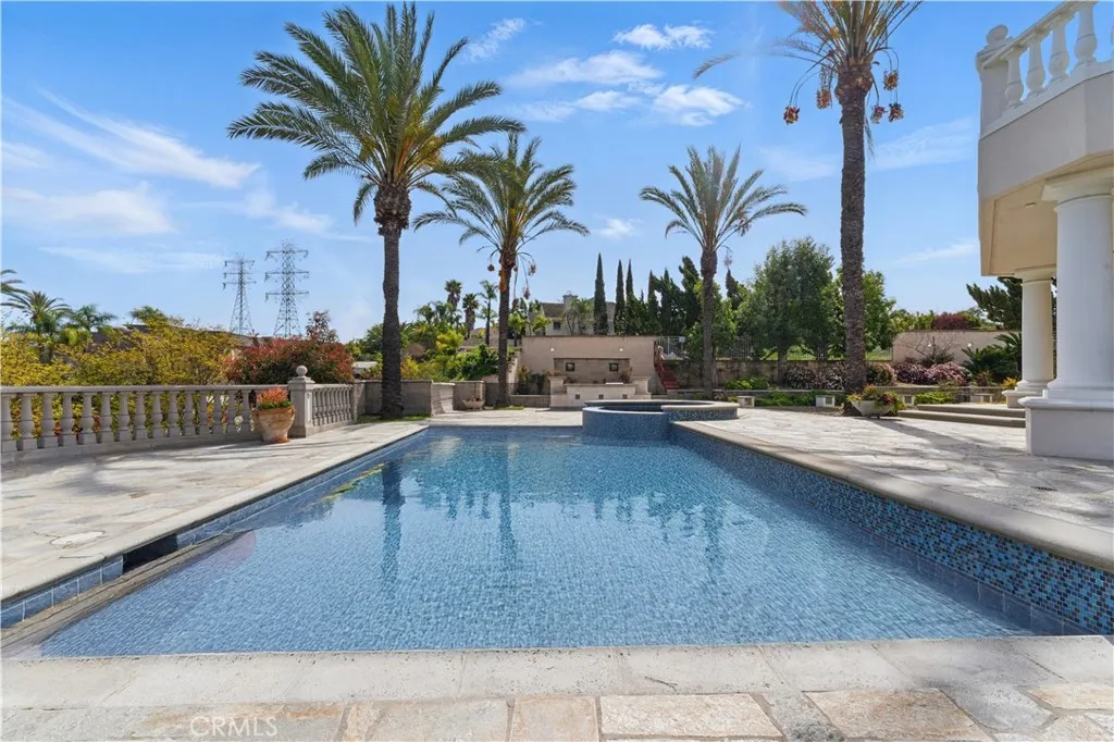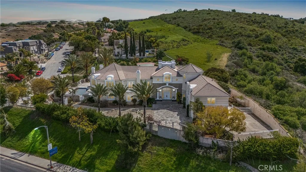This extraordinary estate, is a rare opportunity in the exclusive, gated Skyline Estates community. This offering includes two premium parcels with separate APNs:Lot 1 – A grand custom-built estate spanning 10,477 sq. ft. on an expansive 46,451 sq. ft. lot.Lot 2 – A 27,493 sq. ft. vacant lot featuring an old tennis court, offering potential for development or personalization.A private, tree-lined driveway leads to this magnificent estate, where luxury and tranquility blend seamlessly. The home features 8 en-suite bedrooms and 9.5 bathrooms, designed for both comfort and sophistication. The striking double-height foyer, illuminated by skylights and a stunning chandelier, sets the tone for an interior adorned with marble and tile flooring, hand-crafted woodwork, and European-inspired lighting. The formal living and dining rooms showcase coffered ceilings and statement stone fireplaces, while a stately library with rich wood paneling and built-in shelving offers a distinguished retreat. The chef’s kitchen is well-appointed with a center island, stainless steel appliances, a wet bar, granite countertops, a walk-in pantry, and a cozy breakfast nook with a built-in desk.Three primary en-suites serve as private sanctuaries, featuring walk-in closets, cedar paneling, Jacuzzi tubs, dual-sink vanities, and separate showers. Two elegant staircases with solid wood steps and hand-painted wrought iron railings lead to an upper level designed for entertainment and relaxation, complete with 7 en-suites, a den, a secondary family room, and an expansive entertainment lounge with built-ins, a reading nook, and game areas.The third level offers a serene Japanese tatami tea room and a dedicated yoga space for ultimate relaxation.Outside, the resort-style backyard boasts a pebble-finish pool and spa, stone railings, multiple seating areas, and lush landscaping filled with mature palm trees and vibrant flowers. The property also includes a 4-car garage, generous driveway parking, and space for an RV or basketball court.Sweeping canyon and city light views can be enjoyed from nearly every window, creating a breathtaking backdrop. With a meticulously designed layout, 5-zone A/C, and endless possibilities with the additional lot, this estate offers a rare opportunity in one of the area’s most desirable communities.