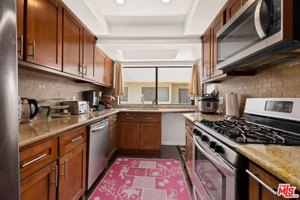 Boasting over 2,600 square feet of refined living space, this exceptional townhome seamlessly blends modern elegance with everyday comfort. Highlights include rich hardwood floors, recessed lighting, and an open-concept layout enhanced by soaring ceilings that create a bright and airy atmosphere. The gourmet kitchen is a chef's dream, featuring abundant cabinetry, granite countertops, and premium stainless steel appliances. The luxurious primary suite offers a spacious walk-in closet and a serene retreat-like feel, while additional amenities include an attached garage and generous storage throughout. Ideally located within walking distance to Ventura Blvd., this residence delivers the perfect balance of style, convenience, and sophisticated living.
