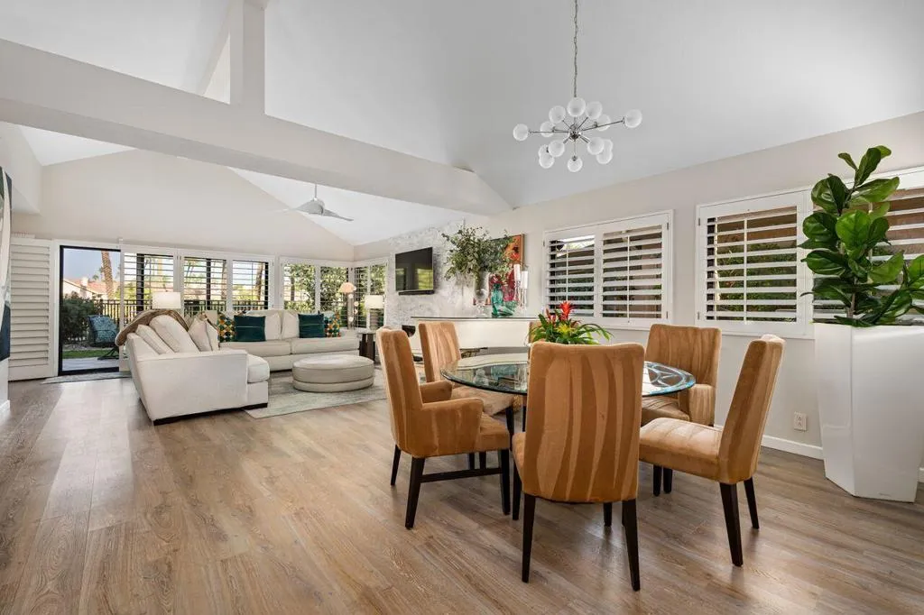Welcome to Silver Sands RC, THE BEST RACQUET CLUB in the valley! 2 professional coaches onsite, instructional classes and special events. Prime location in Palm Desert, close to El Paseo shopping, adjacent to JW Marriott, across from Desert Willow Golf Resort where Palm Desert residents receive reduced rates. This home is unattached. 1992SF home has 3 bed/3 baths, 2 Patios, Private Courtyards plus an Atrium. Light and Bright decor, professionally decorated. Upgrades include kitchen cabinets, New Quartz countertops, Vinyl Plank flooring, natural wood look, throughout ,tile flooring in bathrooms. Breakfast nook in kitchen, bench seating around table. Fireplace has white Stack Stone reface. Enjoy mountains views from the extended back patio. Center Courtyard concrete and tiles refinished last year. New metal gates replaced for privacy. Stainless Appliances, Blue Star Range, New Refrigerator, Bosch DW, completes the Cooks Kitchen. On-suite bathrooms for each bedroom. Built in desk and storage cabinets in third bedroom for office. Plenty of storage primary bedroom has walk in closet, plus a wardrobe cabinet included with purchase.Community has a combination of Desert Landscape and matured shade trees, Green Grassy Greenbelts in the community areas. HOA includes, 8 lighted courts, Gym, 15 heated Pools and Spas. Maintenance and replacement of Roofs, Stucco siding, Exterior Painting, community Pest service, Front and Back Landscape maintenance and Cable-Internet is provided by the HOA. Clubhouse activities and Seasonal events are planned by the Social Committee. 2 car garage, new storage cabinets, work bench and storage rack above. The inside laundry room, utility sink, storage. Water softener tank in garage, serviced by Culligan Water.Air conditioner, Furnace, Hot Water Tank, purchased new in 2018-2019. Don't miss this RARE OPPRTUNITY TO OWN the largest floor C plan in a condo community. Secure gated community .Call first to make an appointment. Seller is a Real Estate Agent and a local Interior Designer.