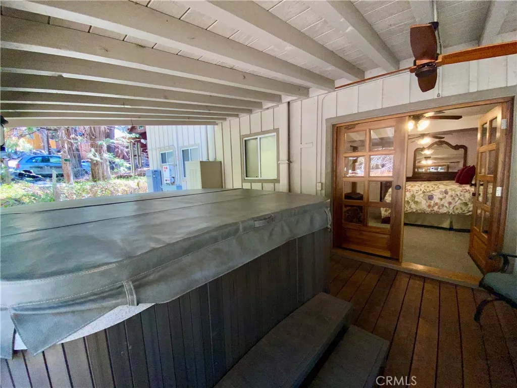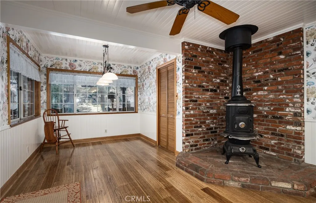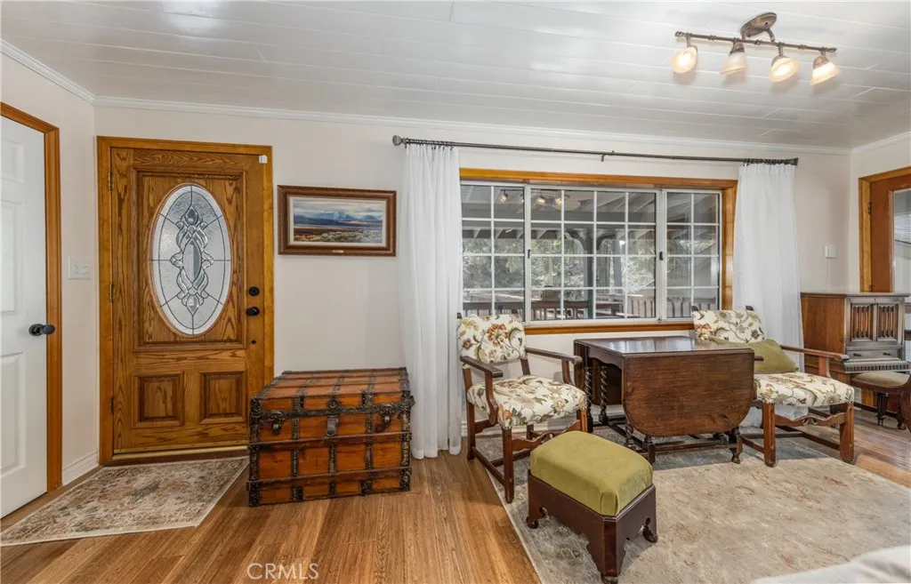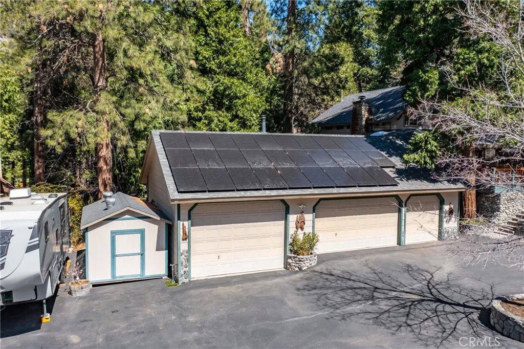 Price Reduction ~~ A True Mountain Beauty. This Rare find on an huge Lot, 12400+ sf, features a 5 car Oversized Garage, 1 for RV & additional RV side parking for any extra toys. Beautiful 5 bedroom 2 bath home set in the serene town of Forest Falls has everything you have dreamed of. Covered wrap around Porch invites you into this Gem with Gorgeous Wood Flooring, Updated kitchen with Stainless Steel appliances featuring double refrigerators, Granite counters, recessed lighting & wood burning stove. The open Living room will shine when your guests gather at the Stone fireplace & wood burning insert. Lower level Primary bedroom with deck & your own Spa, Primary bath with walk in closet, 4 Spacious, carpeted Bedrooms up stairs with full bath & Bonus rooms for kids &/or your Crafting needs. Indoor Laundry area includes the washer/dryer, sink & extra cabinets, Landscaped yard w rock pathways & planters, a garden shed/green house & workshop for the wood worker? Additional shed for lawn/garden equipment. Front facing deck to take in the crisp morning air & Rock water feature with pond. Home is equipped with leased Solar & battery back up and owned Propane tank EV charging outlet in garage & electrical hookups for RV area. Additional parking in front of the home & easy to access the street with circular driveway. Close to Redlands shopping & restaurant area approx 20 mins away & just down the hill from Big Bear. Seller has FEMA letter stating flood ins is not required (recommended) So much to see in this Beauty, Make your appt Today !!