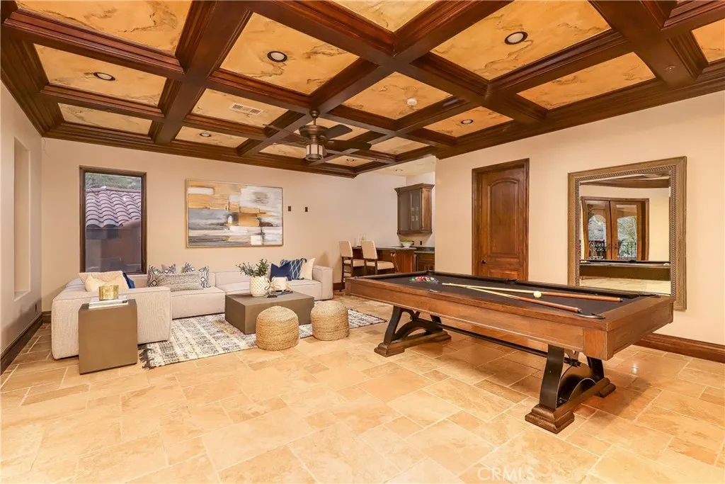 Amazing Sand Canyon luxury estate!! Approximately 10,600 sqft with an additional 1300 sqft finished basement with movie theater gives you roughly 12,000 sqft of living space on 2.47 acres. Unlike other custom builds of this square footage, the well planned warm architectural design features of this house truly make it the most safe and secure home. Tasteful & unique stone choices throughout just add to the beauty of each new space. As you enter the through the front doors into the grand entrance, you are welcomed into the living room where you enjoy a view of the magnificent backyard and pool through a custom bowed glass window. This home boasts an array of indoor and outdoor entertainment areas, plenty of natural light throughout, & stunning views. The executive office shares a fireplace with the living room & is equally as impressive. The primary suite also resides on this wing, featuring huge walk-in closets with custom cabinetry, & separate his and her washrooms. The opposite wing consists of two spacious bedrooms & a gym with steam room. The 2 wings flank the grand central living which features the two story ceilings, an amazing kitchen, & two center islands. The 2nd floor contains multiple guest rooms, a large game room, wet bar & 2 patios. The subterranean level is home to the custom built home theater, wine cellar/tasting room, storage room & a half bath. Equally impressive covered patio space, sports court, amazing sports pool with swim jets, fire & water features, & color changing LED lights! The property has a multi-car garage, gated oversized RV and circular drive to finish off the upscale vibe. Perfect home from the most discerning and private person, entertainers who love to host amazing get togethers, to the large family to enjoy the ultimate in luxury living.