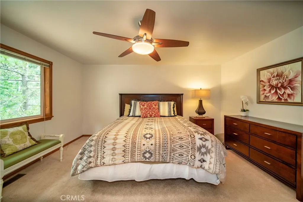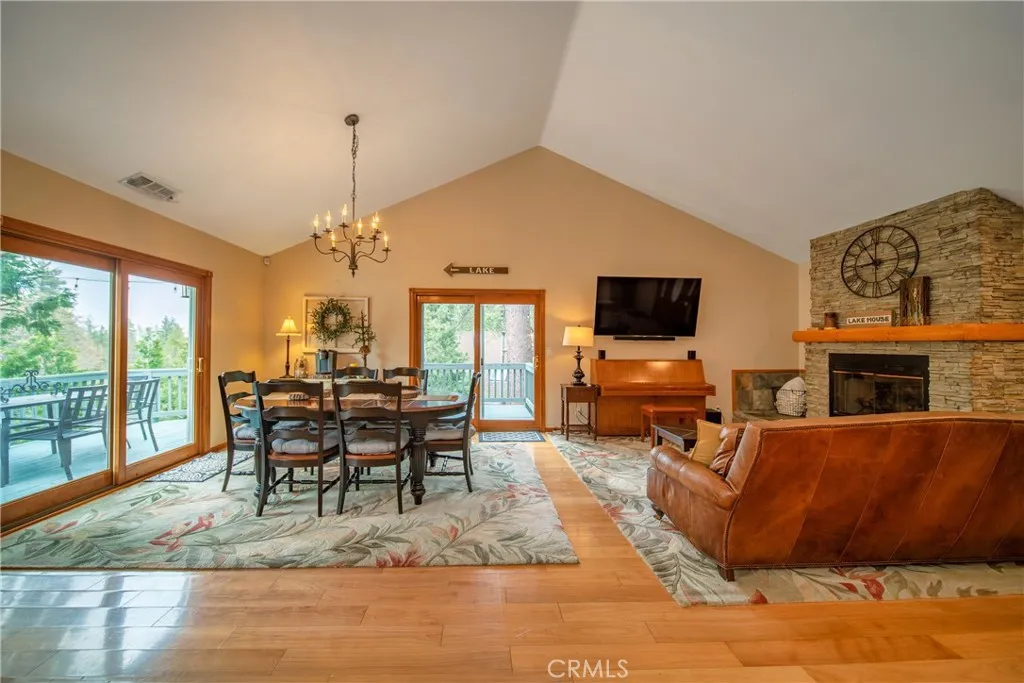 SELLER IS READY TO DEAL – Making this turnkey cabin an even bigger steal! Turnkey Lake Arrowhead cabin with lake rights, no steps at entry, and a main-level primary suite—offered by a motivated seller! Inclusions: All Appliances, Most Furniture, Basic Kitchenware, Basic Linens, Snowblowers, Generator, Outdoor Furniture, tankless water heater, home security and automation water filter! Exclusions: Wall Hangings, Personal Items, Anything in closets, Piano. Ideally located within walking distance to the lake and Blue Jay Village, this thoughtfully designed home features two spacious primary suites, soaring ceilings, a beautiful stone fireplace, and large windows showcasing peaceful forest views. Enjoy great curb appeal with log siding, a wraparound porch, and a bold front door. Secondary Plow Street! (After the County plows the main highways) SELLER SAYS: SELL IT!