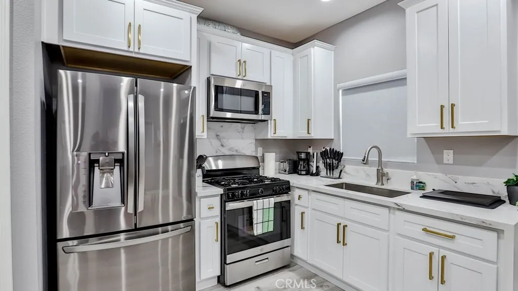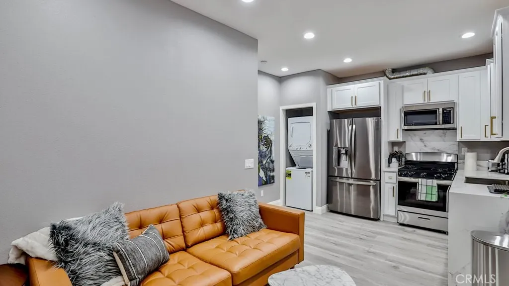 Property to be delivered vacant by close of escrow. Beautifully Remodeled Home with a Separate ADU. Rent one and Live in the other. The Main Home has 3 bedrooms, 1 bathroom, and 1148 sq ft living space. Step inside to a turn-key unit with a large open living room to the kitchen area. This open floor plan features the living room, dining, and kitchen all together in one cohesive space. This unit offers brand new luxury vinyl flooring, brand-new paint, and recessed lights throughout. The kitchen is fully modern with white cabinetry, quartz countertops, and stainless-steel appliances. The bedrooms have ample closet space. The bathroom is luxuriously upgraded with large format tile detailed walls, LED light-up mirror, brand new vanity, and shower. Other great features include recessed windows. ADU has 1 bedroom 2 bath with an office that you can put up a wall and make it another room. The back of the lot has a 2-car garage.
