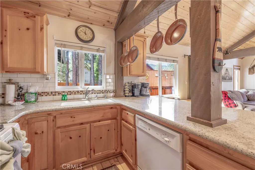 Nestled among the trees in Moonridge, this charming cabin is just minutes away from all that Big Bear has to offer—skiing, snowboarding, boating on the lake, visiting the zoo, golfing, hiking, dining, and shopping in the Village. This is the "Classic Cabin" you've been dreaming of. Featuring 2 bedrooms, 2 full bathrooms, an original Big Bear rock fireplace, custom wood flooring and cabinetry, and a modernized kitchen with granite countertops and updated appliances. The open-concept living and dining areas flow seamlessly into the kitchen, creating a spacious and inviting atmosphere. Step outside to a private back deck with a new privacy fence and Jacuzzi, all installed in 2022. The driveway and A.C. are also newER. Plus, the home can come fully furnished—just pack your bags and head to your perfect getaway in Big Bear!