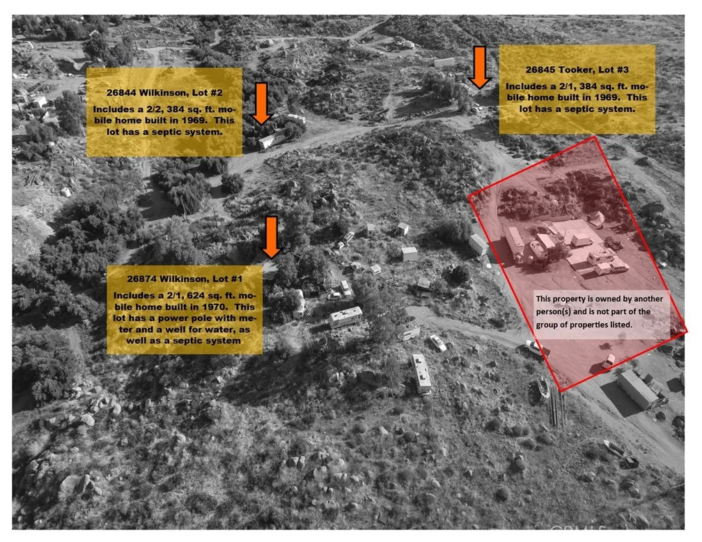 This property is ~2.5 acres of land, currently with a mobile home on it; however the mobile home is no longer habitable. The property has a water well and a septic system. Electrcity currently comes from the 26844 Wilkinson lot. This property offers rural living, opportunities for building and developing, agriculture, and plenty of space to bring your vision to fruition. This is one of four properties being offered and can be purchased individually, or along with any of the other three properties if desired. For reference, the additional property addresses are: 26844 Wilkinson, 26845 Tooker and 0 Tooker. Collectively, the properties are ~10 acres.