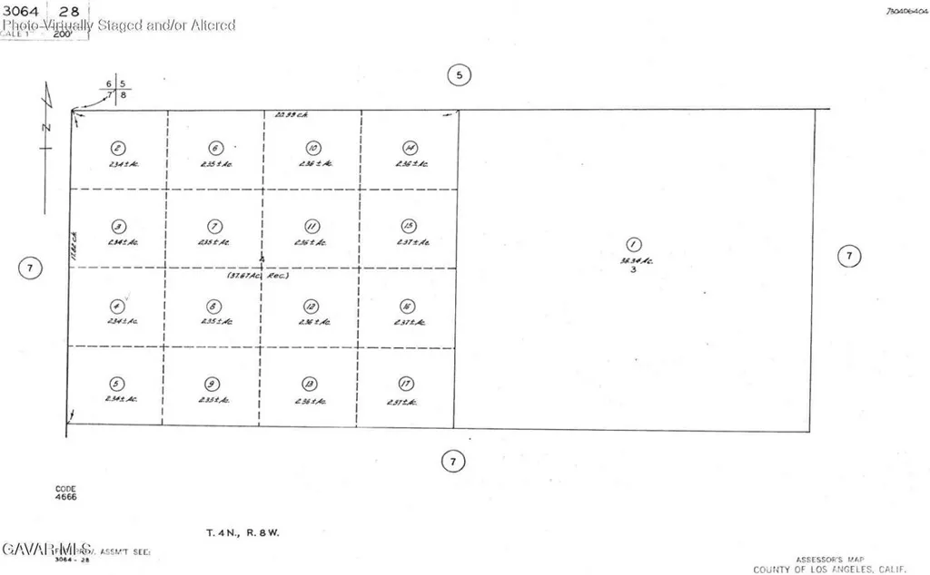 APN: 3064-028-005 Coordinates: 34.451889, -117.746917 2.37 acres for sale in Los Angeles County. This parcel is located in Llano, CA. This is one of two parcels for sale in this area. The surrounding area is rural and accessible via 213th St E and Ave Z-4. This area is near the Angeles National forest and Crystalaire. Excellent location.