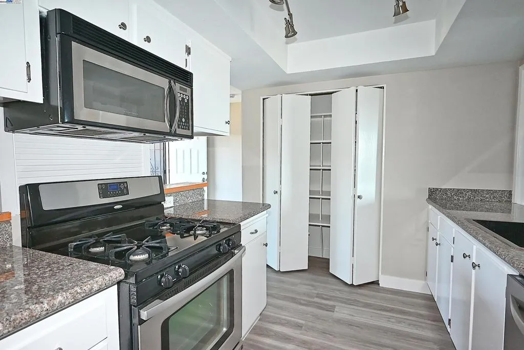 This seller is MOTIVATED! Open this Sat/Sun 2-4. Panoramic Bay views! We have inside laundry! We have lots of parking and lots of open space! The complex has completed the legally required decks and bridges! New vinyl plank flooring, interior paint and baseboards -- just move in and add your touches! Two bedrooms one full bath, spacious dining and big living room with crown molding and gas starter fireplace. Updated kitchen and bath, stainless appliances (brand new microwave as of October 1st!), granite counters, professionally painted white cabinetry and big pantry. Energy efficient dual windows and sliders. Front and rear decks perfect for gatherings and for your morning coffee and evening viewing of the magical San Francisco Bay. Loads of unit storage + an additional off site storage space. Complex features refreshing pool, hot tub and tennis court. The open space up here just feels like country living! With only 108 units on over 12 acres, you will not feel cramped! Loads of parking, great location in the complex and let's not forget those top rated Castro Valley schools! And for the adults/parents, Castro Valley boasts a thriving downtown, with favorites like The Breakfast Club, Philz Coffee, Canyons BBQ, the Marketplace & Tony’s Pizza.