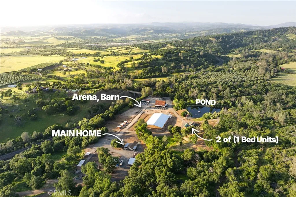 Silver Ridge Stables is a complete horse boarding and training facility located in Butte County, northern California, along the edge of Table Mountain. Silver Ridge borders the North Table Mountain Ecological Reserve and well known Phantom Falls is located on the southeastern corner of the property. There is a public trail access easement here, allowing visitors year round access to the Falls area, so it’s important to know you’ll be sharing this spectacular feature. Table Mountain is famous for its extravagant displays of spring wildflowers, it’s beautiful waterfalls and deep canyons. Silver Ridge Stables sits on 277 acres of land, much of it on the top of Table Mountain, currently accessed by foot and horse only. It’s the last property on the street, offering privacy and serenity that’s hard to find. The lower portion of the ranch includes a lighted and covered arena, with views overlooking the northern Sacramento Valley, two wooden barns, which include an office area, hay storage, tack room and 15 individual tack lockers. There are 9 horse runs with covers that come off the two barns and 8 additional paddocks with run in shelters and individual water troughs. The ranch also includes a 3 acre fenced pasture and around 8 acres of old olive orchard, also fenced. Trails are cut through out the property and orchard and you have direct access to enjoy several thousand unfenced acres on Table Mountain. Silver Ridge includes three residences, each with great views. The main residence is a remodeled three-bedroom manufactured home with an enclosed front porch and a covered back porch. It also includes an RV parking area with full water/power and sewer hookups, a carport and storage. There are two other newer one bed/one bath manufactured units, currently connected by a breezeway. They overlook a large pond and the riding arena, as well as the valley views. Potable water comes from 3 springheads, established in 1910. A Generac provides emergency power for homes and barn. The lowest edge of the property is bordered by train tracks. It’s less than a half hour to both Chico and Oroville for convenient access to shopping and dining. Sacramento is an hour and a half drive and Tahoe around 3 hours. This is a one of kind property offering an opportunity to own and enjoy a truly special setting in northern California!