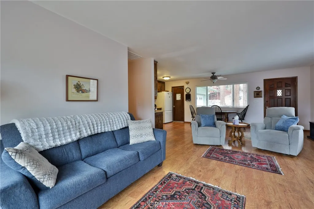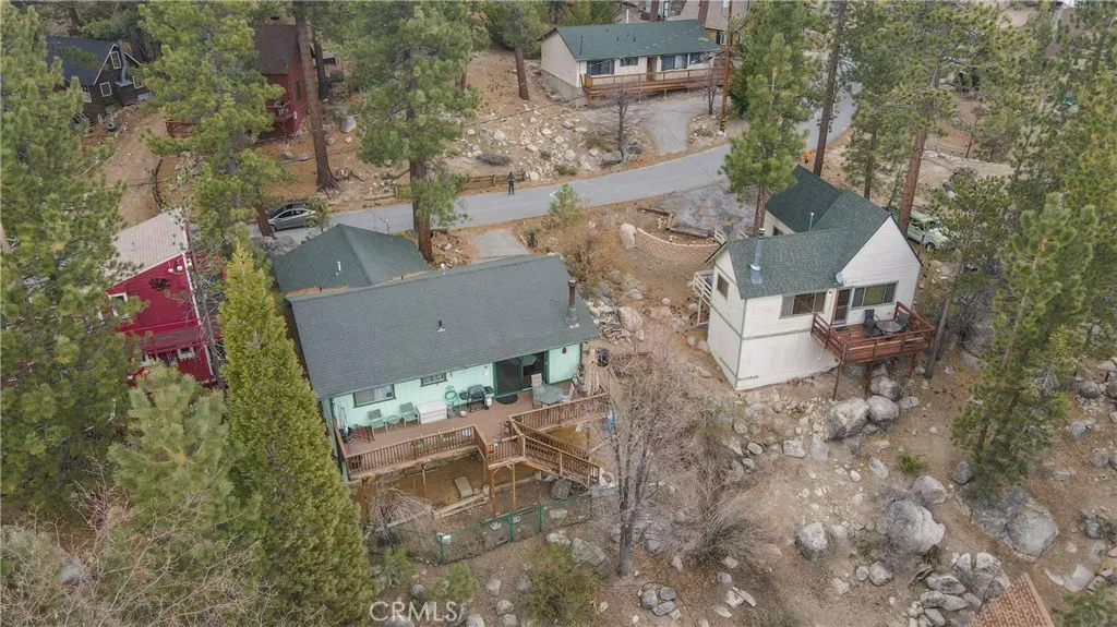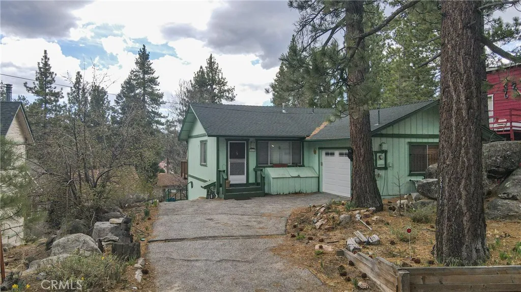 Back on the Market. Can be sold fully furnished. Welcome to this beautifully maintained 2-bedroom, 2-bathroom home offering 936 sq. ft. of comfortable living space on a 5,430 sq. ft. lot, complete with a rare 1-car attached garage. Step inside to an open and inviting floor plan filled with natural light. The kitchen features butcher block countertops and backsplash, a stainless steel sink, white appliances, and ample cabinet space—perfect for cooking and entertaining. The family room boasts a cozy fireplace with a rock surround, ceiling fan, and multiple large windows that open to a spacious deck with stunning scenic views. The primary bedroom includes wood floors, a large closet, ceiling fan, and an en-suite bathroom with a walk-in shower. The hallway bathroom offers a tub/shower combo and single vanity. Enjoy outdoor living on the expansive deck—ideal for relaxing, dining, and taking in the mountain surroundings. Additional features include a large under-deck storage space, newer roof, central heating, and in-garage laundry. The level driveway and attached garage provide rare convenience for the area. Located just minutes from Big Bear Lake, shopping, dining, and recreational activities, this turnkey property combines comfort, functionality, and charm. Don’t miss this opportunity to own in one of Fawnskin’s most sought-after neighborhoods! Move-in Ready – A Must See!