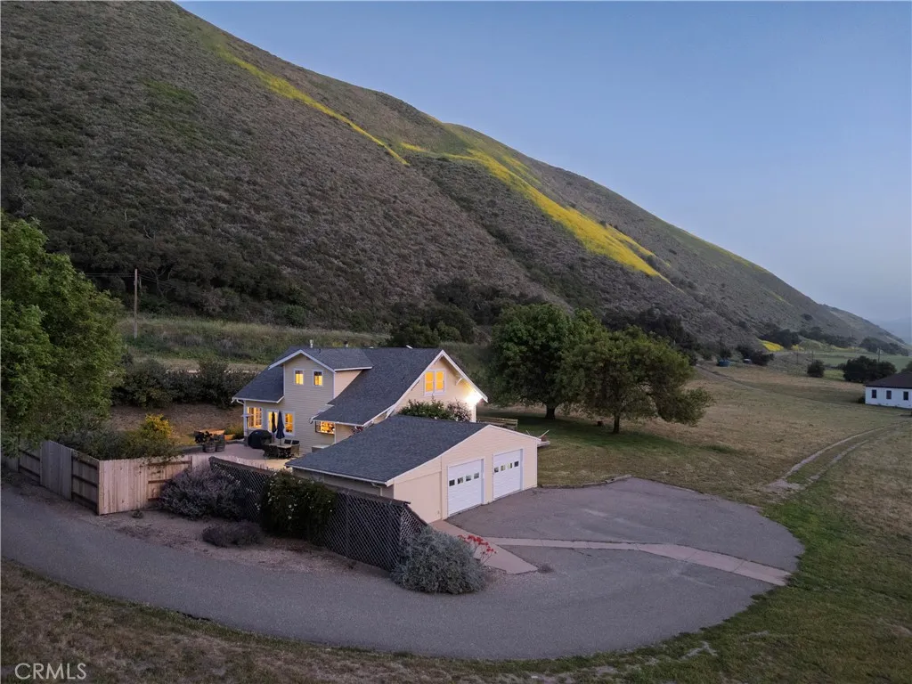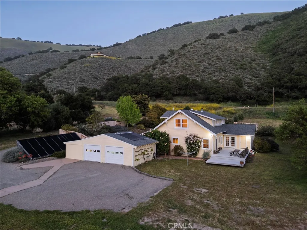 Welcome to 4651 Tepusquet Road—a timeless, storybook farmhouse set on a beautifully maintained ranch in the heart of the Santa Maria Valley. Originally constructed in 1914 and thoughtfully relocated to this peaceful setting over four decades ago, this inviting three-bedroom, two-and-a-half-bath home offers approximately 2,800 square feet of updated living space, blending warmth, character, and functionality. The home’s charm begins at the front entry, where a bright and cozy mudroom/sunroom invites you to enjoy morning coffee, a good book, or sunshine year-round. Inside, hardwood floors run throughout the main level, while large windows flood the home with natural light and showcase serene views of the surrounding acreage. The refreshed kitchen offers ample space for cooking and gathering, with adjacent dining and family rooms that are ideal for entertaining or relaxing with loved ones. A wood-burning fireplace warms the den, and a dedicated office off the family room provides the perfect space for remote work, creative pursuits, or a quiet retreat. Upstairs, the spacious primary suite has vaulted ceilings, generous closets, and an en suite bathroom. Two additional bedrooms share a full bath and offer comfort and style for family or guests. Step outside onto the expansive deck—perfect for starlit dinners, morning sunrises, or quiet reflection overlooking the rolling grounds. Just beyond, a solar-heated swimming pool and hot tub offer a luxurious escape, powered by the property’s owned solar system. The large barn adds value and versatility, with room for agricultural storage, equipment, or a workshop/studio. The surrounding landscape is thoughtfully designed with drought-tolerant plants and raised garden beds for vegetables, flowers, or herbs. A variety of fruit trees—plum, lemon, orange, tangerine, lime, olive—and blackberry vines provide a true farm-to-table experience. The flat, usable land is ideal for horses, a boutique vineyard, organic farming, or even adding a second home or ADU. A year-round creek adds natural beauty and additional potential for farming or grazing on the acreage beyond. Located just off Foxen Canyon Wine Trail and within 2 miles of amazing wineries, this property offers the perfect balance of rural tranquility and modern convenience. Whether you're seeking a peaceful retreat, an entertainer's dream, or a working ranch, this exceptional property offers endless opportunities.