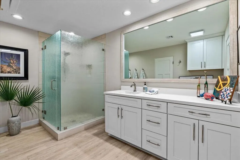 Leased until 5/2/2026, now accepting applications. Lease rate varies based on seasonal and length of lease. Nestled between the world famous La Quinta Resort and Old Town, this tastefully remodeled end unit is the perfect location. Private gated entry courtyard with beautiful landscaping and lounging fire pit area that's fully enclosed for pet and family enjoyment. Inside you'll discover a fully remodeled 2-bedroom condo with vaulted ceilings, new floors, cabinetry, kitchen, bathrooms, quartz counters, appliances, dual primary closets, and custom built-in storage. Step outside and extend your living space with 3 patios each offering views of the Santa Rosa Mountains while backing onto a private greenbelt. The two-car plus separate golf cart garage features raised flooring along with extra storage cabinets. Any lease of this unit must be for at least thirty (30) consecutive days.