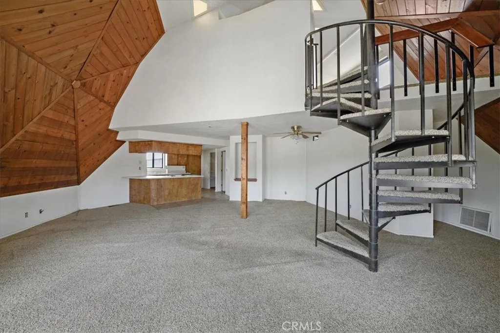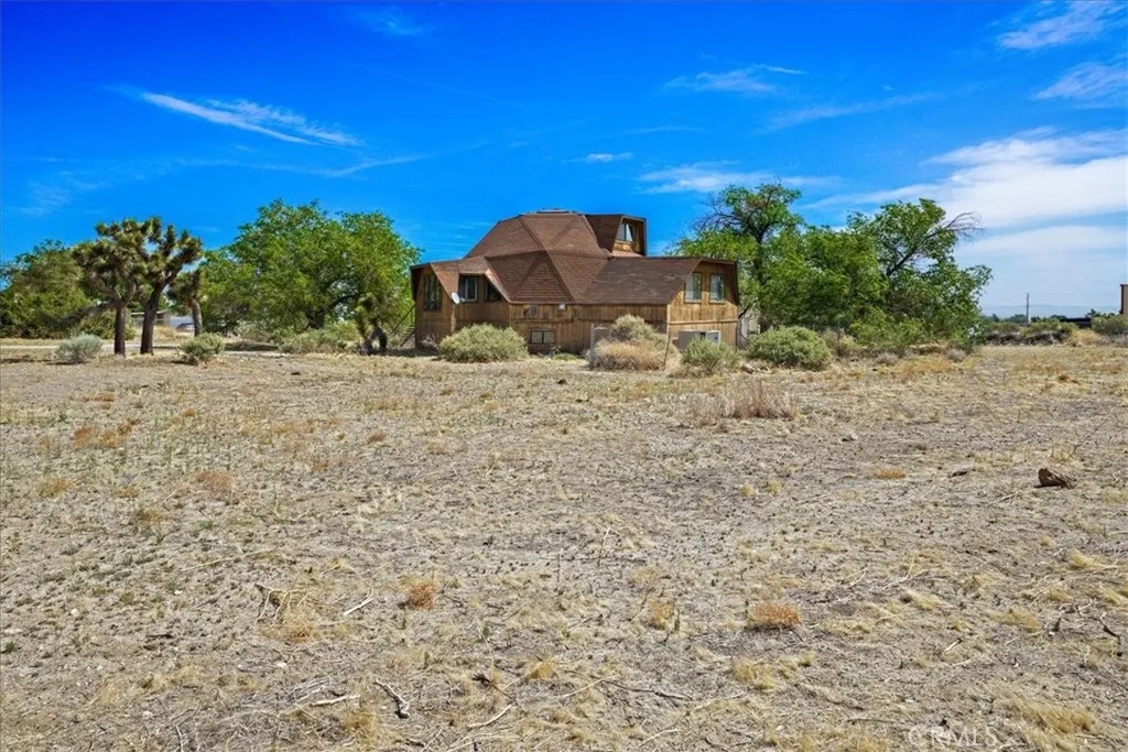 Escape to your own private retreat at this one-of-a-kind geodesic dome home, set on a flat and fully usable 2-acre lot in scenic Phelan. This unique 3-bedroom, 2-bath property offers 1,718 sq ft of character-filled living space—perfect for a full-time residence, weekend getaway, or investment opportunity with potential for an ADU or short-term rental. Step inside to soaring ceilings, dramatic wood-paneled accents, and an open-concept living area with a spiral staircase leading to a loft-style third bedroom and half bath. The main level features two additional bedrooms, a full bathroom with a tub/shower combo, and a spacious kitchen that opens to the family room, creating an inviting and functional space. Year-round comfort is ensured with central AC—an essential upgrade in the High Desert climate. The home's entry is filled with light and warmth, thanks to expansive windows that frame beautiful desert views and create a dramatic, airy welcome. Below the main floor, a sizable basement with washer/dryer hookups offers additional space for storage, creative projects, or future customization. Outside, a massive industrial-style garage/workshop with tall roll-up doors provides ideal space for RVs, boats, equipment, or hobbies. The expansive lot offers plenty of room for recreation, storage, animals, or future expansion. Conveniently located near shopping, schools, and Hwy 138, this rare High Desert gem offers beauty, privacy, and unlimited potential.