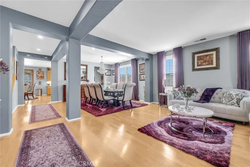 PRICE ADJUSTMENT on this Absolutely Gorgeous ExecutiveCorner Lot Pool Home – 5 Bedrooms, 4 Baths, 4,220 Sq Ft of Luxury and Pride of Ownership This impeccably maintained two-story home is a must-see! Located on a desirable corner lot in a great area of Eastvale, This home offers 4,220 square feet of elegant living space, featuring 5 spacious bedrooms and 3 full bathrooms. Beveled glass accents throughout add a touch of sophistication. A generous size bedroom and full bathroom are conveniently located on the main floor—perfect for guests, in-laws, or a home office. The main floor also includes an individual utility/laundry room for added convenience. The gourmet kitchen is a chef’s dream, showcasing a granite island, walk-in pantry, KitchenAid appliances, and beveled glass cabinet doors. Adjacent to the kitchen is a built-in desk and a huge great family room complete with a elegant marble fireplace and custom entertainment center. Upstairs, you’ll find a HUGE loft/bonus room that can be transformed into a home theater, game room, or anything you envision. 4 additional bedrooms upstairs and 2 share a Jack-and-Jill bathroom, while elegant crown molding and beautiful flooring enhance the space. The luxurious primary suite features a large walk-in closet, a second closet, and an en-suite bath with marble flooring, dual sinks, a soaking tub, and a separate shower. Plantation shutters and ceiling fans throughout the home provide both style and privacy. Step outside to your own backyard paradise—complete with a beautifully designed sparkling pool, rock waterfall, jacuzzi, built-in BBQ, and a cozy firepit area—perfect for entertaining or relaxing year-round. Additional features include solar panels, two HVAC units, 3 car garage and is in a prime location near the distinguished Corona-Norco School District, with easy access to freeways, shopping, dining, and the Silver Lakes Equestrian and Sports Park.