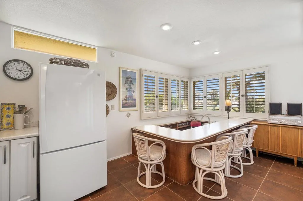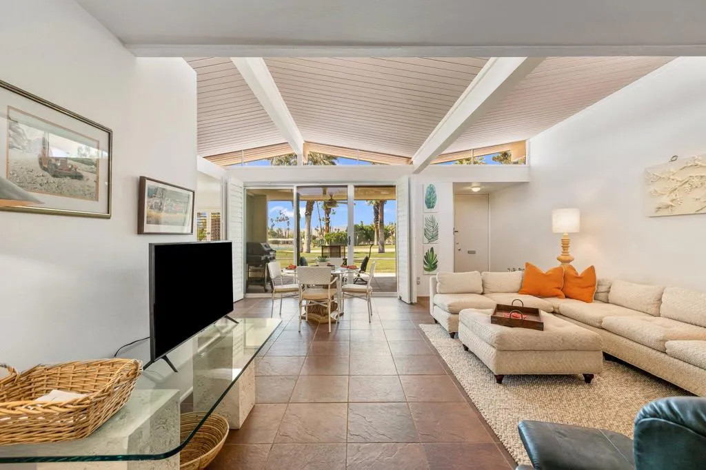 Mid-Century Modern Vibes in South Palm Desert! This true mid-century modern gem, designed by the iconic Harold J. Bissner of Robert I. Pitchford & Associates, is bursting with soul and style. With 2 bedrooms, 2 baths, and those classic clerestory windows that let the light pour in just right, this is Palm Desert living at its most vibrant. Enjoy dazzling sunsets from your private patio overlooking historic Shadow Mountain Golf Course, a tranquil pond, city lights, and the stunning mountain backdrop. There's even a natural gas BBQ ready for effortless outdoor entertaining. Tucked just off the primary suite, a serene courtyard offers a quiet spot for morning coffee or a good read. Inside, you'll find a thoughtfully updated kitchen and baths, tile floors throughout, plantation shutters, a bar for evening cocktails, and an owner's closet to keep things secure when you're away. Sold turnkey furnished, so you can step right into the vibe. Located in the boutique 16-unit Mountain Shadows community--with a sparkling pool and spa--it's just minutes to El Paseo, McCallum Theatre, College of the Desert, and endless options for hiking, biking, golf, and tennis. Cool, classic, and full of character--this one's got groove and views. Don't miss it!