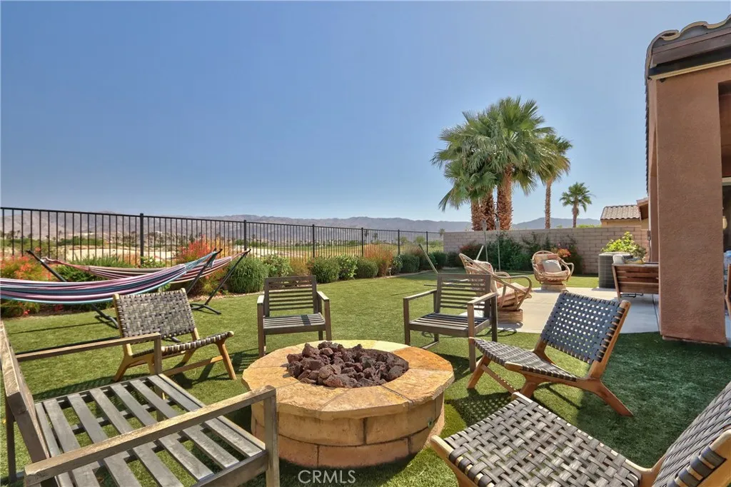 PRICE DROP!!!!!!!!!! ANOTHER 10K BETTER HURRY!!!!!!!!!!!WELCOME TO YOUR NEW HOME IN THE UPSCALE PRIVATE GATED COMMUNITY OF TERRA LAGO. THIS IS A GREAT OPPORTUNITY FOR YOU TO OWN A TURN KEY HOME WHERE ATTENTION TO DETAIL IS EVIDENT. BEAUTIFUL AND SPACIOUS COURTYARD LEADING UP TO YOUR FRONTDOOR.THE HOME IS LOCATED ON THE GOLF COURSE WITH AWESOME VIEWS OF THE COURSE AND MOUNTAINS.THIS HOME BOASTS 4 BEDROOMS, 3 FULL BATHS IN 2472 SQ FEET OF PURE LUXURY. THE KITCHEN HAS CUSTOM CABINETS, GRANITE COUNTER TOPS AND A HUGE CENTER ISLAND BAR.THE BEAUTIFUL LARGE PRIMARY BEDROOM HAS HUGE WALK-IN CLOSET THAT IS READY FOR YOUR BELONGINGS, AWESOME VIEWS OF THE MOUNTAINS AND FRENCH DOORS GOING OUT TO THE PATIO FOR YOUR MORNING COFFEE. THERE IS A DUAL UNIT AC WITH 3 ZONES AND A BUILT IN SURGE PROTECTOR. THE HOME COMES WITH YOUR OWN CUSTOM HIGH-END HOME THEATER ROOM ANCHORS THE SPACIOUS SINGLE LEVEL FLOOR PLAN. THERE IS AN ATTACHED 3 CAR TANDEM GARAGE WITH IT'S OWN TESLA CHARGING STATION. THE BACK YARD HAS A COVERED PATIO LOOKING OUT OVER THE GOLF COURSE WITH MOUNTAIN VIEWS WHILE YOU ENJOY YOUR NIGHT IN FRONT OF THE FIRE PIT. THIS HOME IS PRICED TO SELL FAST SO DON'T HESITATE OR YOU WILL MISS OUT!!!!!!!! LOW STR FEES AND NO RESTRICTIONS. DUES INCLUDE GUARDED GATES, 2 RESIDENT GATES, HIGH SPEED INTERNET AND DIRECT TV. YOU ALSO ENJOY 24 HOUR GATED ACCESS,LAKE ACCESS,CLUBHOUSE AND POOL ACCESS. ELECTRICTY IS THRU IID FLAT RATE NON-TIERED RATE. EFFICIENT LANDSCAPING WITH ARTIFICIAL TURF IN BACK YARD. PROPERTY IS LOCATED 30 MINUTES FROM JOSHUA TREE NATIONAL PARK.