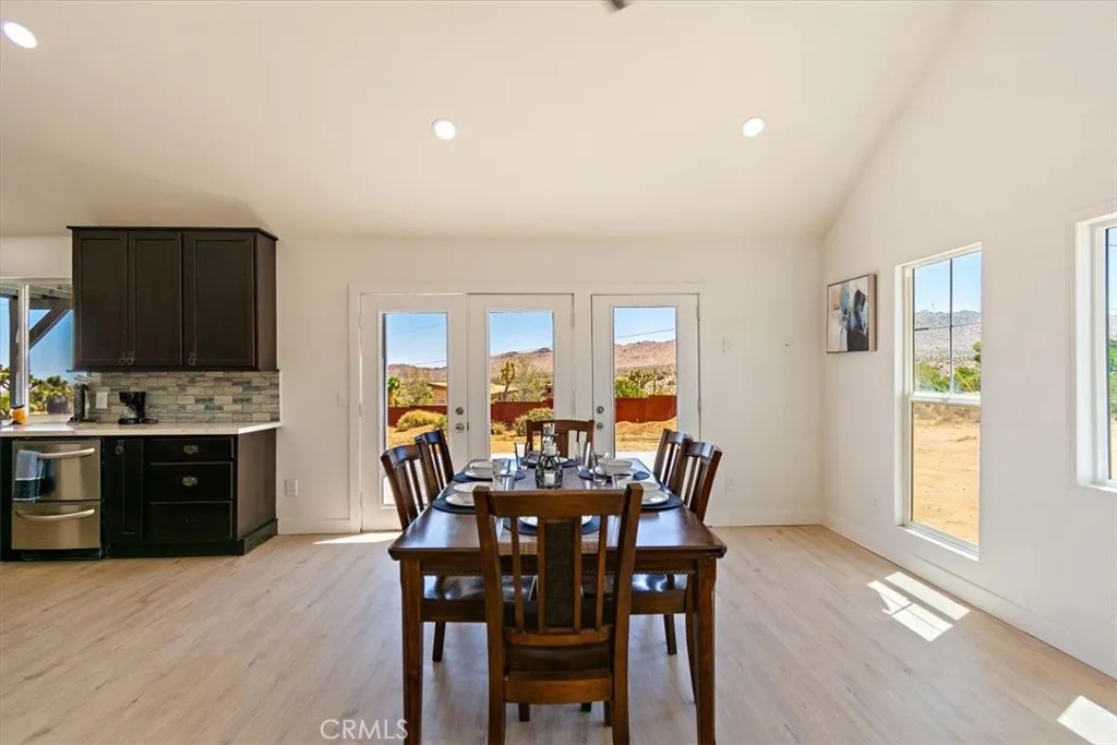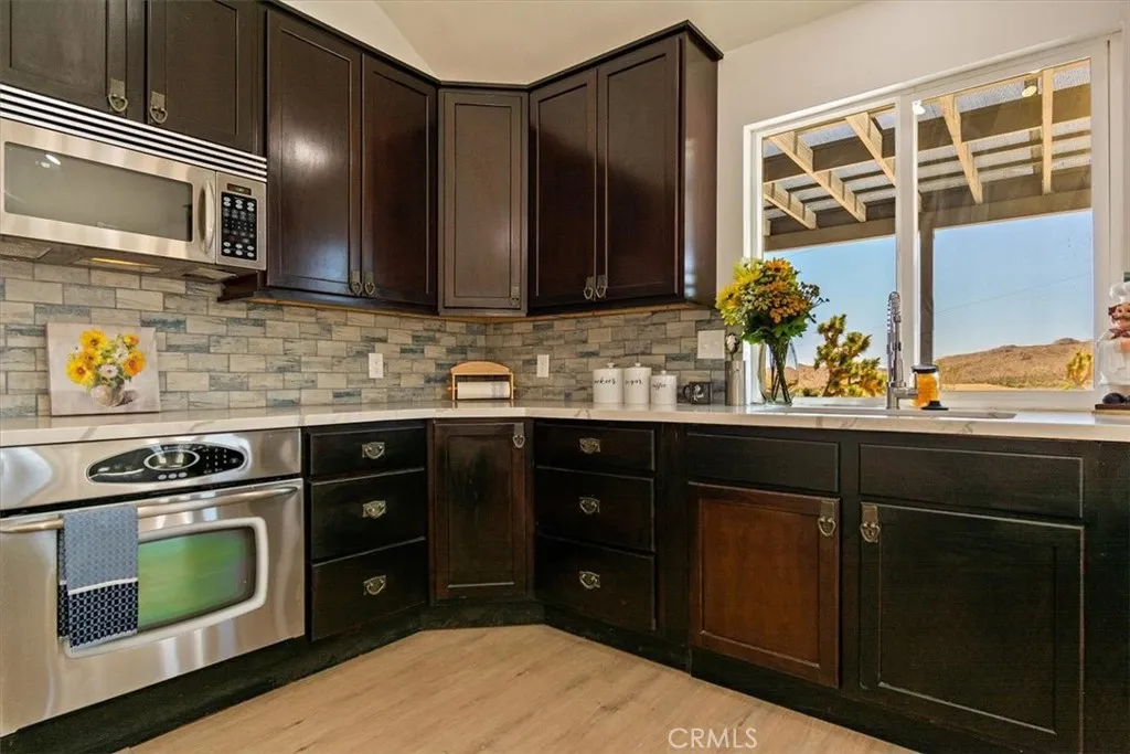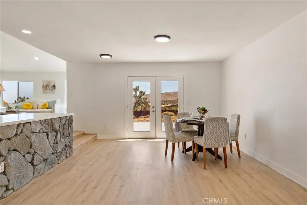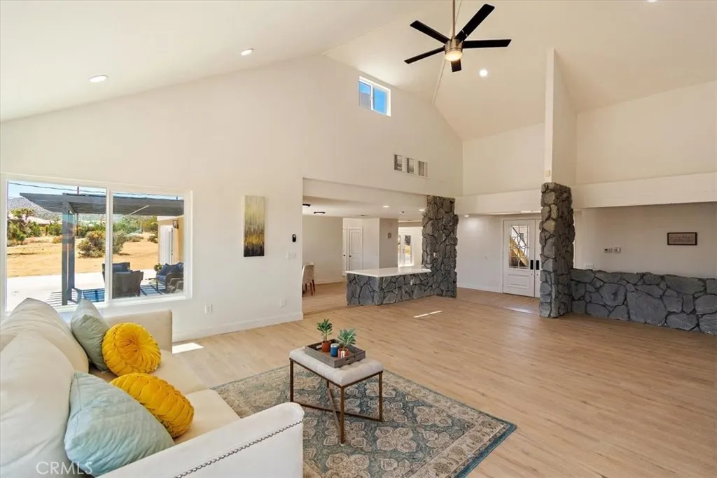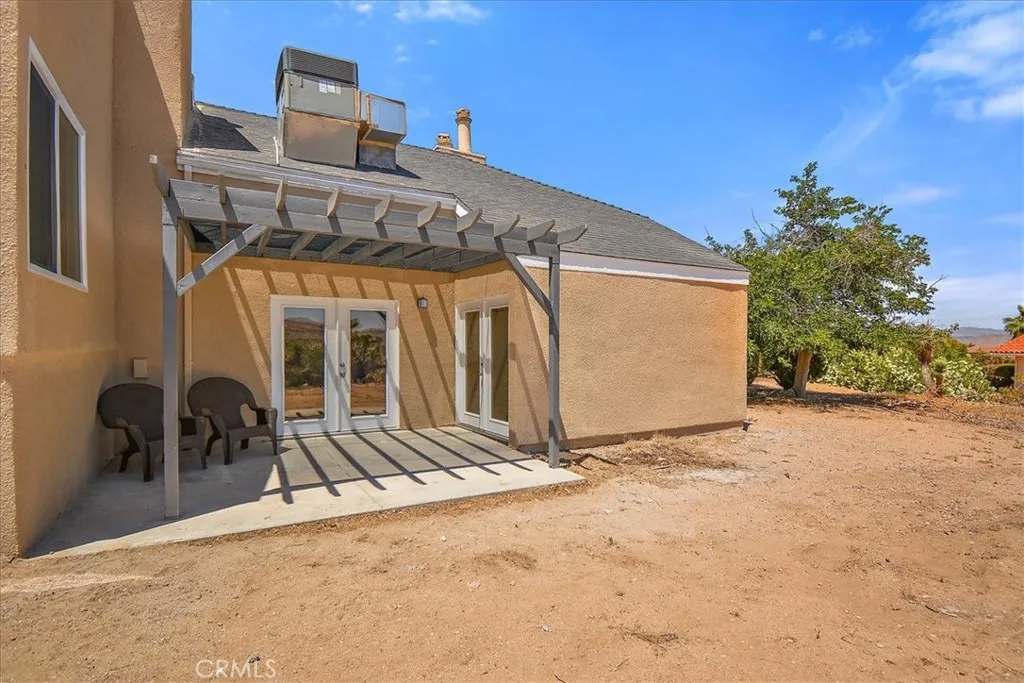 This Spacious, Absolutely Beautiful, and Fully Remodeled Chateau-Style Home in Upper Sky Harbor with leased solar is seated on 1.55 acres and surrounded by gorgeous views of the desert and surrounding landscape. This house has an extremely open floor plan, allowing for entertainment on a grand scale. This home boasts 3 bedrooms, 3 bathrooms, vaulted ceilings, an absolutely stunning and fully remodeled massive Kitchen with stainless steel appliances, Breakfast nook area, dining room, den/office, game room, Gigantic Living Room, Family Room, 2 outdoor patios with coverings, a huge horseshoe driveway, various tree/plants/vegetation, a SPA and so much more!!! Nearby to Parks, Trails, and the famous Joshua Tree National Park. This is perfect investment as a STR and/or a beautiful desert retreat. This home has been permitted with the city and is listed on all major STR sites including AirBNB/VRBO. COME SEE THIS BEAUTIFUL HOME TODAY!!!!