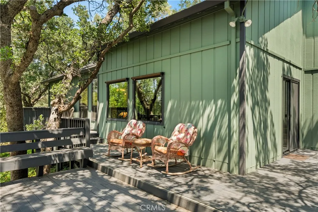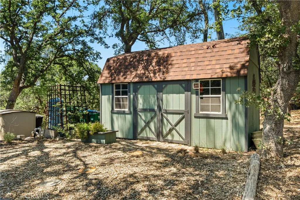 Let your North Chico house hunt stop here! Sitting on over 3 acres, this custom built home is in a private setting among the oak trees set far down a private drive with lots of amazing features. You'll immediately be drawn to the warm, vaulted tongue and groove ceilings that run throughout the main living and dining area. You will notice all of the windows capture the natural beauty of the terrain. The living room features large windows looking out to the back yard allowing for plenty of natural light, high ceilings, a cozy fireplace, and a custom built-in set of shelves. In the kitchen the same custom cabinetry compliments the bright white quartz counters, tile floors, and stainless steel appliances. Off the kitchen is an oversized den with a wet bar, stacked laundry, and garage access. The two guest bedrooms with a shared bathroom are situated downstairs. Up the stairs is a landing with a home office area and the master suite just beside. The master suite is very spacious and is truly a retreat with views of the property out every window! There is a walk-in closet, ensuite bathroom with tile shower and large vanity with lots of counter space. Outside is where the best features of the home truly shine, including the expansive deck with hot tub! This is the perfect space for entertaining, sipping morning coffee, or simply sitting and listening to the birds chirp. On the rear, lower part of the property, there is a new two stall metal horse barn with pen while the entire property is cross fenced making this property perfect for any other livestock or furry friends. Other notable features of the property include a newer tankless hot water heater, new exterior paint, roof under 10 years old, gutter guards to reduce annual leaf maintenance, mature landscaping with automatic sprinklers, a storage shed, and a paved driveway. This property is truly unmatched with the one-of-kind design and privacy just waiting for you to call it home!