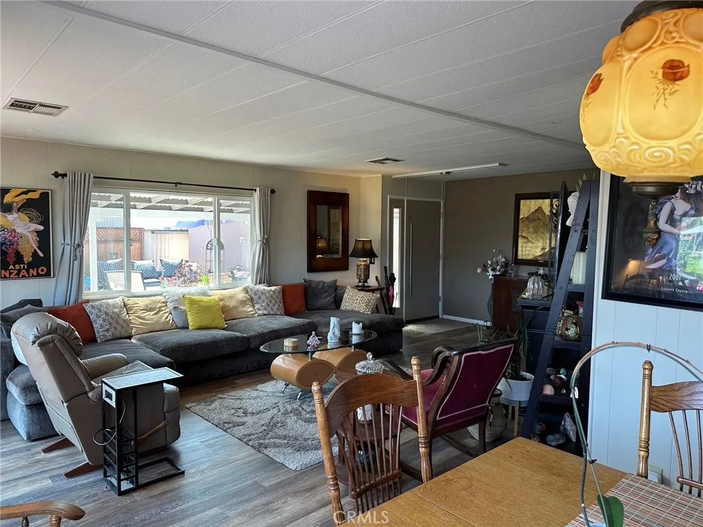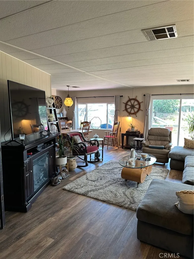 Experience the joys of lake living in this beautiful 2-bedroom, 2-bathroom home located in The Lagoons Park on the Lake. This vibrant 55+ community offers a resort like feel with events and get togethers. This spacious home features an open floor plan with a welcoming family room and an inviting atmosphere throughout. The large primary suite includes dual closets, built-in drawers and cabinets, plus a dedicated vanity area. The en suite bathroom offers dual sinks and a shower/tub combo for added convenience. The second bedroom has direct access to the second bathroom, ideal for guests or a home office. Enjoy plenty of natural light through dual-pane windows with coverings, and appreciate the seamless flow from the kitchen to the dining area, living space, and a fantastic bar. The kitchen boasts a brand-new oven, while the separate laundry area includes a washer, dryer, and pantry. Entertain effortlessly in the bar area, complete with a new bar fridge, and relax on new flooring throughout the home. Comfort is assured with newer air conditioning, heating, a brand-new water heater, and a new 100-gallon kerosene tank for the monitor heater. Step onto your back deck and soak in the peaceful lake surroundings. The outdoor space is beautifully landscaped with plants and cozy seating areas. The large lot features covered parking and additional storage. Community amenities include a pool and clubhouse, while the surrounding area offers dining, live music, local events, boating, and fishing. This is lake living at its finest!