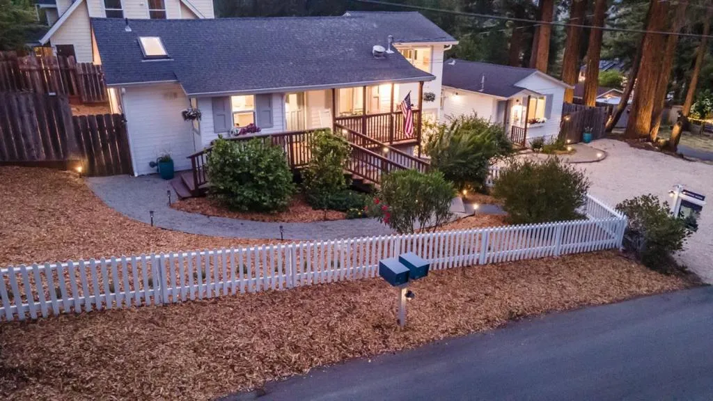Welcome to the most charming home in Felton! Two turn-key homes in the sought-after Forest Lakes neighborhood. Main home consists of 3 bedrooms, 1 bathroom and has been thoughtfully remodeled throughout. Enjoy the new quartz kitchen complete sit up peninsula. Other features include LVP flooring, recessed lighting, picturesque windows, stunning bathroom remodel, primary bedroom with vaulted ceilings, one car garage and a private fenced backyard. The second unit is a detached studio that has been renovated with a new kitchen complete with granite, new cabinets, LVP flooring, recessed lighting, and a fully remodeled bathroom. New electrical throughout both units (each with their own meter). New drainage installed around the property. Plenty of parking and space for an oversized vehicle. This Felton location does not get any better - only 2 blocks from Hwy 9, walk to Henry Cowell, downtown Felton, Roaring Camp, Forest Lakes, and so much more!