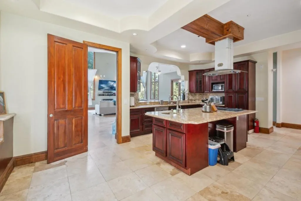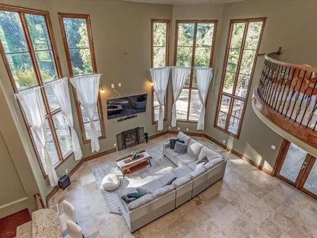 Price reduction! Sellers loss! Buyer gain! Excellent location! This Residence features 8,025 sf, over 7 acre including a second lot w/ 5 bedrooms, 5 1/2 bathrooms, 3 bedrooms each boasting a private bath plus an expansive master suite w/ a private balcony w/ breathtaking views. Modern gourmet kitchen seamlessly connected to a covered patio ideal for al fresco dining and entertaining. Grand living room impresses w/ tall windows & ceilings, a cozy fireplace, integrated wet bar, adjoining covered deck/balcony invites you to savor the picturesque surroundings. Separate formal dining room, & 2 distinct family rooms offer versatile spaces for both quiet relaxation and lively gatherings. Additional features include a home theater for the ultimate cinematic experience, an exercise room to support your active lifestyle, & a convenient laundry room. Open floor plan, accentuated by high ceilings and natural light, creates a fluid indoor-outdoor living environment that complements the home's upscale character.