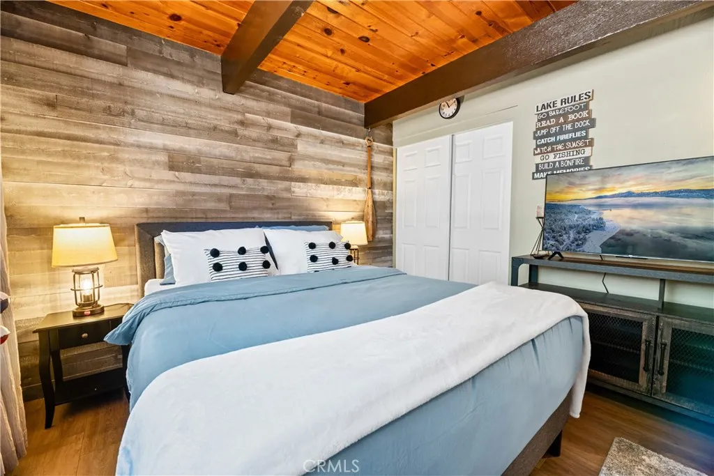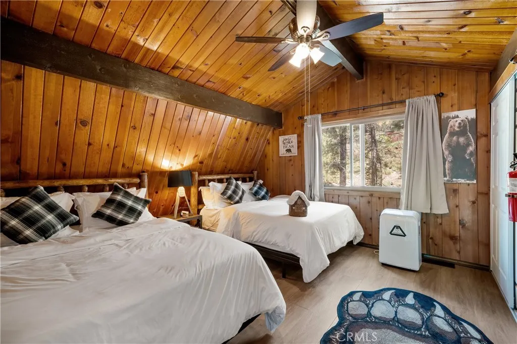 Escape to the mountains and indulge in the ultimate cabin retreat! This beautiful Big Bear cabin is located in Whispering Forest, one of the highly desirable neighborhoods in Big Bear City. This 3-bedroom, 1-bathroom cabin is nestled in a quiet neighborhood surrounded by soaring pine trees, beautiful views of neighboring cabins, and peak-a-boo views of Snow Summit and Bear Mountain Ski Resorts. Located on an 8,960 sq ft lot, this home offers privacy and seclusion while still being minutes away from the lake, ski resorts, hiking trails, boat ramp, and The Village (Big Bear Lake's hub for dining, shopping, and entertainment). The open-concept layout of the living room and dining area makes this cabin very comforting and inviting. The cabin features a big-picture window that offers a panoramic view of nature day in and day out. The kitchen has new countertops and modern tiles that truly complement the rustic feel of the cabin. The fireplace has been updated and it features a wall-mounted remote that creates a warm and welcoming ambiance, any season of the year. The laundry area is located on the main floor which is very accessible. This cabin has a newly installed A/C which is a major plus since only a few cabins in Big Bear have a central A/C system installed. The main floor already offers a lot to see but there is more to explore on the second level where the 2 spacious bedrooms are located, with one of the bedrooms having a private balcony. This cabin epitomizes mountain luxury and the perfect escape from city life. Don't miss this incredible opportunity to own a mountain cabin with breathtaking views.